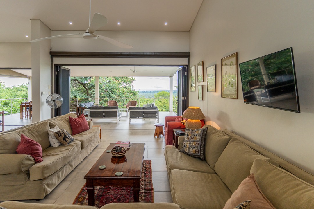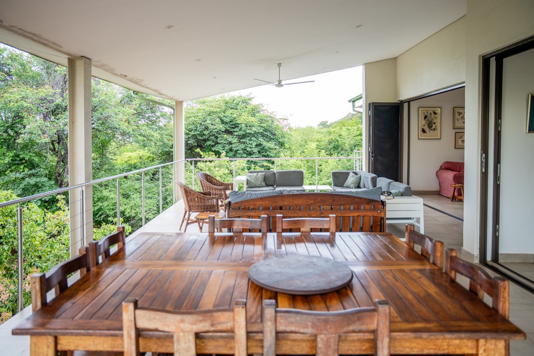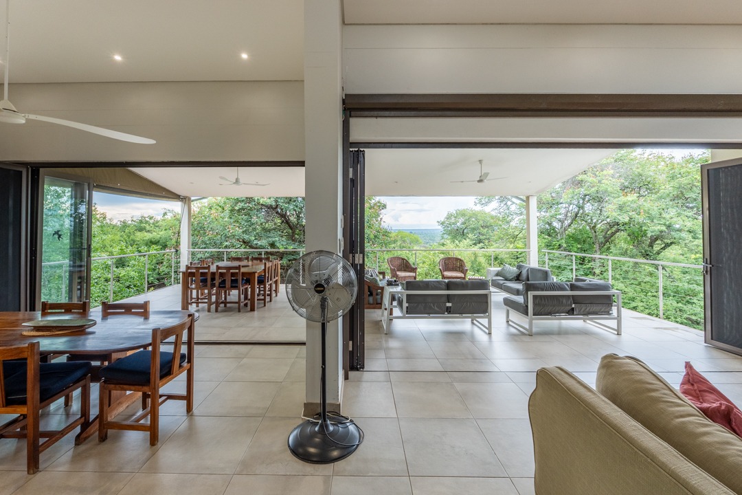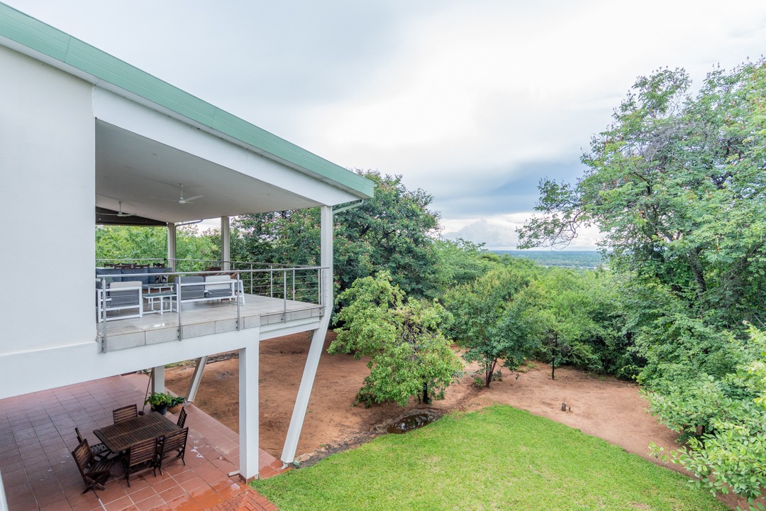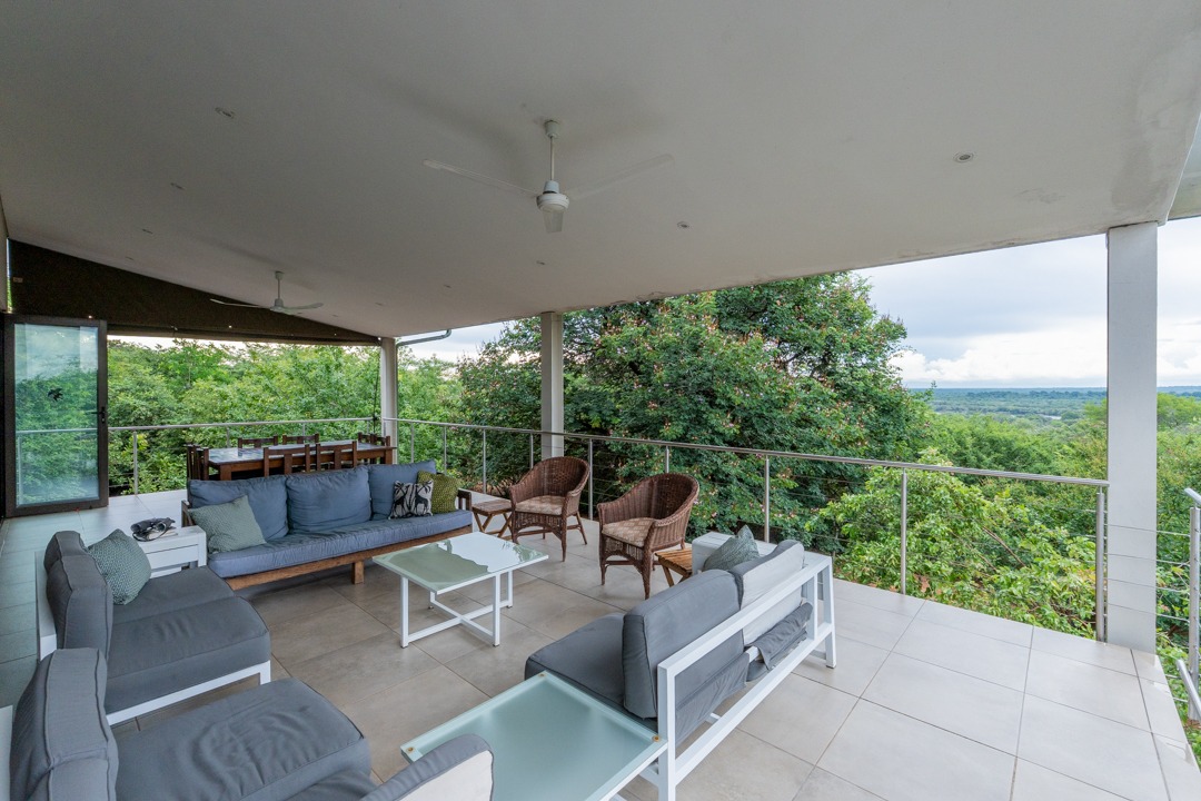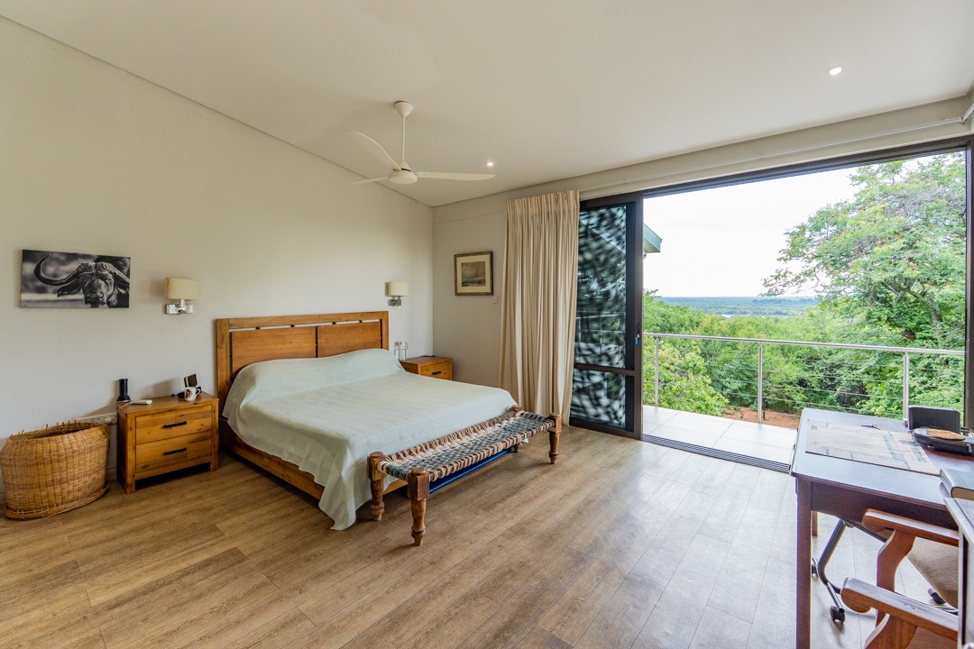 REMAX LISTING KAZUNGULA – Unique location in the well-known Chobe District of northeastern Botswana, is this property set on a hill on the edge of a Zambezi teak forest, featuring mature trees and overlooking views where 4 countries converge, one can see the river in the distance, enjoying the spectacular sunsets and sunrises year-round. Birds are abundant and game in the area and can be heard frequently. The Chobe National Park is approx. 10km away and the Victoria Falls is an easy 40 minutes just over the border. This property comprises of the main house plus 3 x 2-bedroom self-contained luxury cottages tucked away on private spots around the property and a swimming pool perfect for hot summer days. The main house has incredible design and style for enjoyment of the scenic views and spaces from the various large balconies and lush garden. Featuring a multi-level 3-bedroom home, all with ensuite bathrooms, 2 lounges, study, dining area open plan with a well-appointed kitchen with breakfast counter, separate scullery, walk-in storeroom. The home has large picture windows all round and the patio doors fold right back and brings the outside landscape right into your uninterrupted view. A fully air-conditioned home, good security features, triple carport, elephant-proof boundary fencing, 2 x 10,000 litre water tanks, 3 phase power, dual water-heating system, automatic 25kva JCB generator, electric gate – all you would wish for and more. The commercial zoning provides potential for tourism accommodation, guest house, this property is perfectly located for a getaway home in the bush or a mini lodge with option to develop this 1,65ha property further to its full potential. Rarely available in this area, this home awaits you. Call/WhatsApp Thalia 72575773