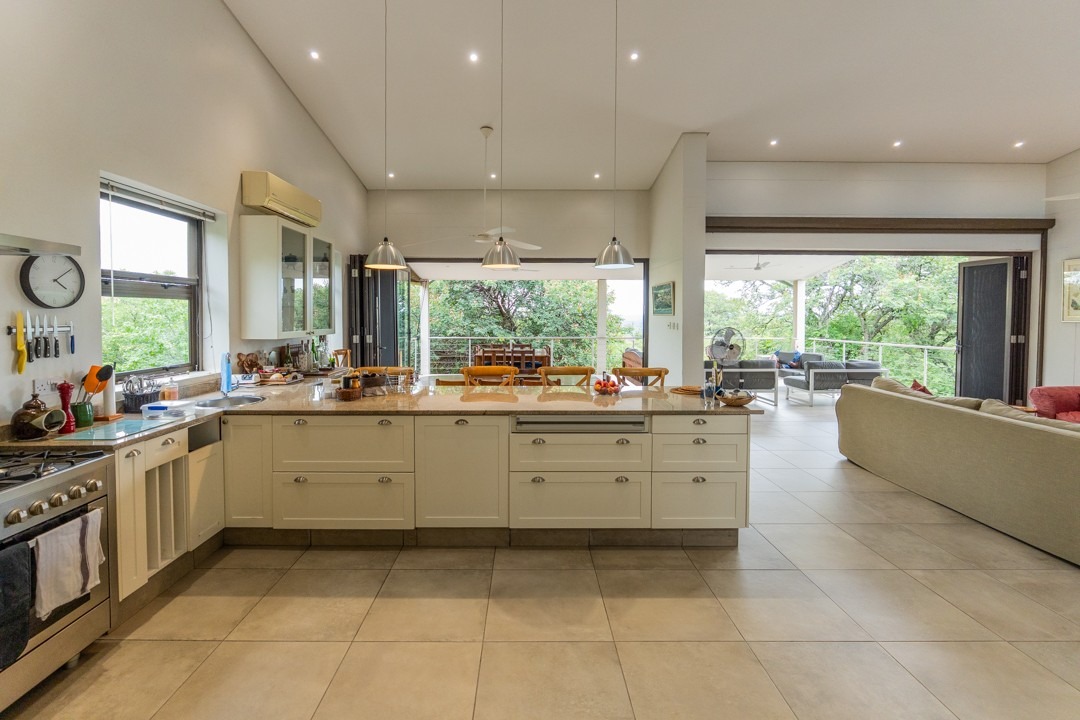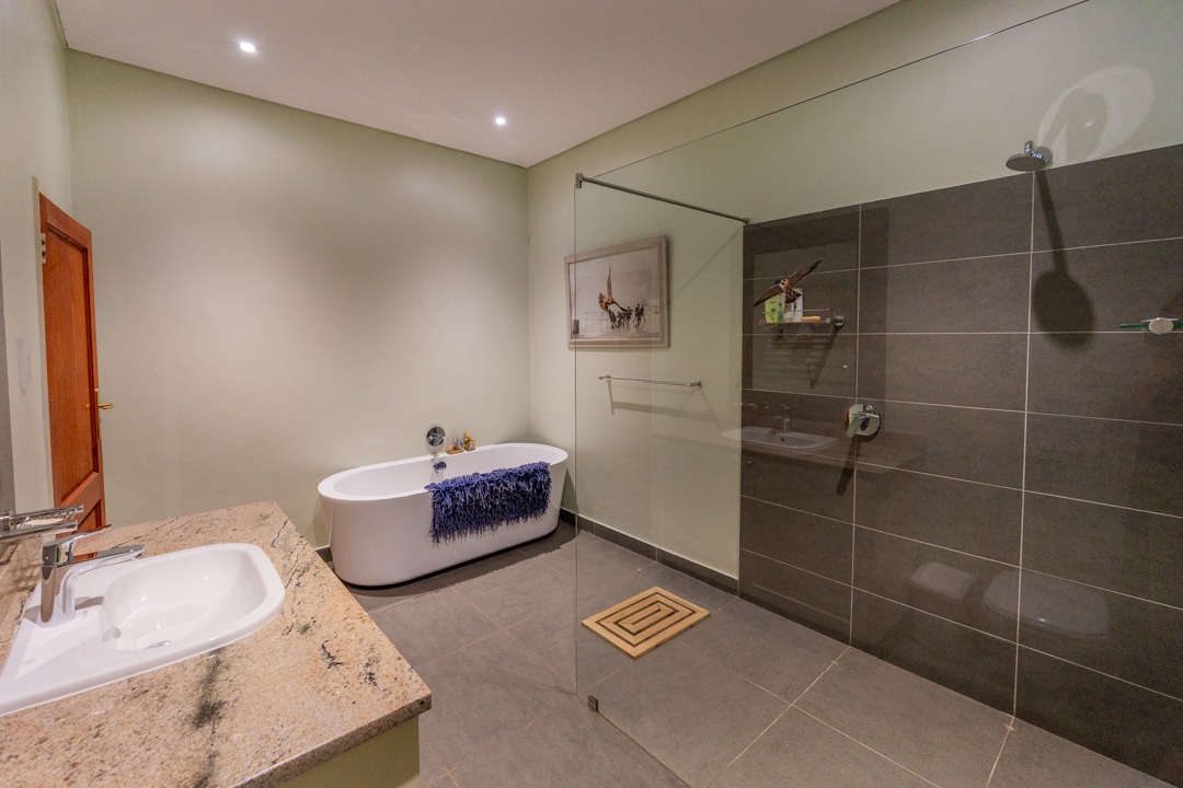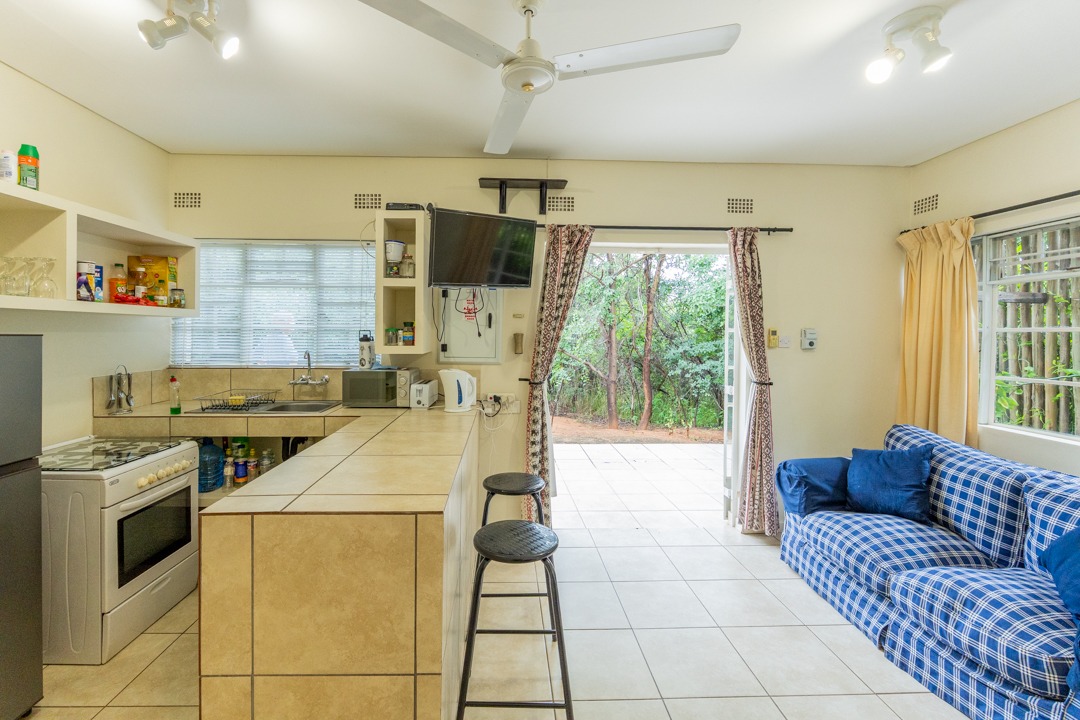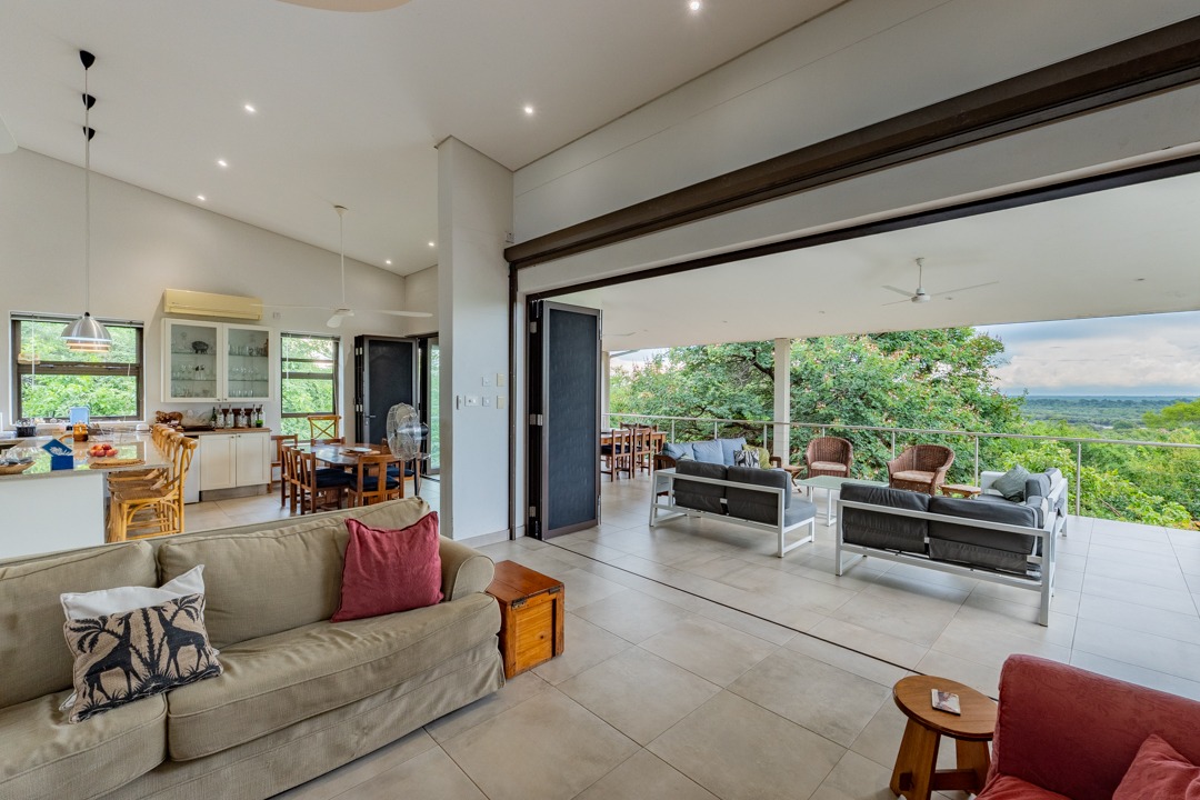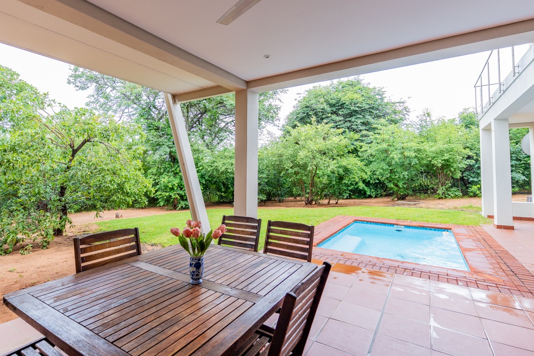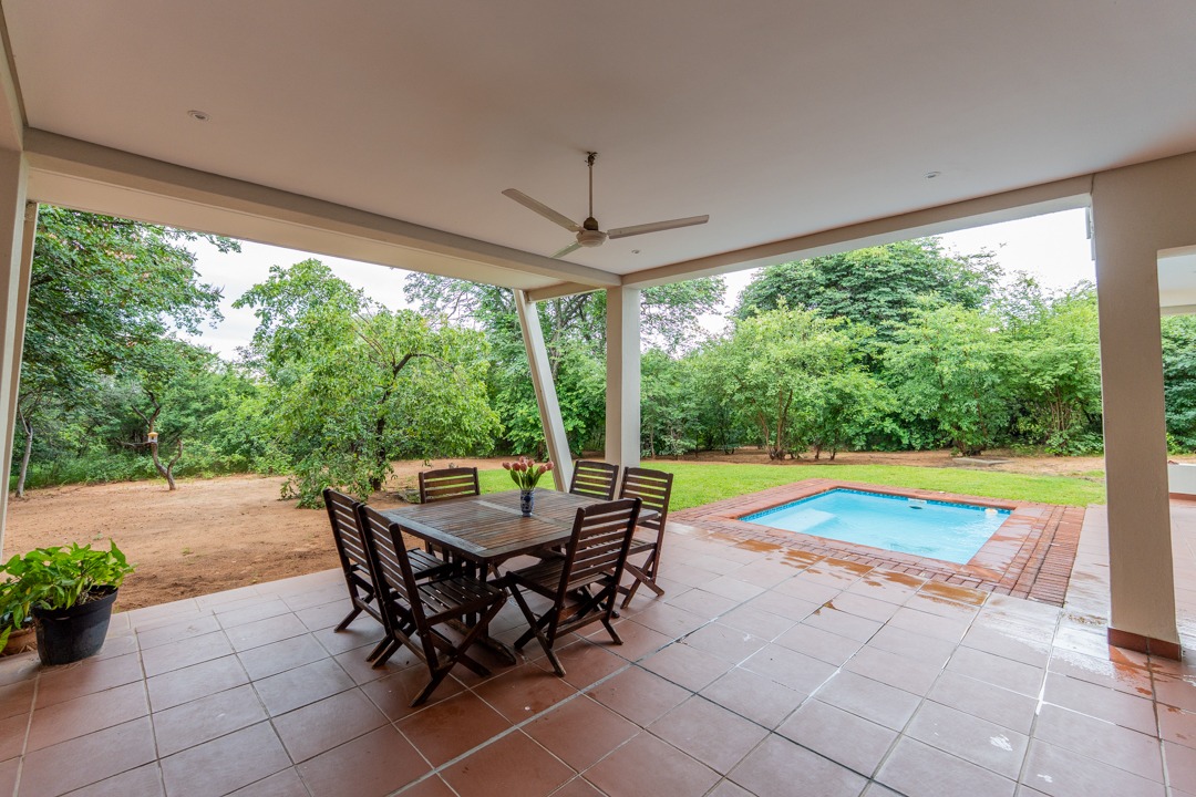 REMAX LISTING KAZUNGULA – Unique location in the well-known Chobe District of northeastern Botswana, is this property set on a hill on the edge of a Zambezi teak forest, featuring mature trees and overlooking views where 4 countries converge, one can see the river in the distance, enjoying the spectacular sunsets and sunrises year-round. Birds are abundant and game in the area and can be heard frequently. The Chobe National Park is approx. 10km away and the Victoria Falls is an easy 40 minutes just over the border. This property comprises of the main house plus 3 x 2-bedroom self-contained luxury cottages tucked away on private spots around the property and a swimming pool perfect for hot summer days. The main house has incredible design and style for enjoyment of the scenic views and spaces from the various large balconies and lush garden. Featuring a multi-level 3-bedroom home, all with ensuite bathrooms, 2 lounges, study, dining area open plan with a well-appointed kitchen with breakfast counter, separate scullery, walk-in storeroom. The home has large picture windows all round and the patio doors fold right back and brings the outside landscape right into your uninterrupted view. A fully air-conditioned home, good security features, triple carport, elephant-proof boundary fencing, 2 x 10,000 litre water tanks, 3 phase power, dual water-heating system, automatic 25kva JCB generator, electric gate – all you would wish for and more. The commercial zoning provides potential for tourism accommodation, guest house, this property is perfectly located for a getaway home in the bush or a mini lodge with option to develop this 1,65ha property further to its full potential. Rarely available in this area, this home awaits you. Call/WhatsApp Thalia 72575773