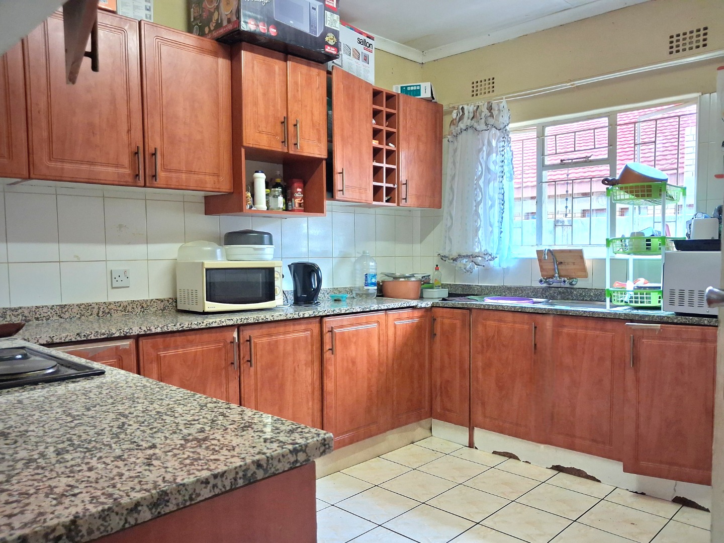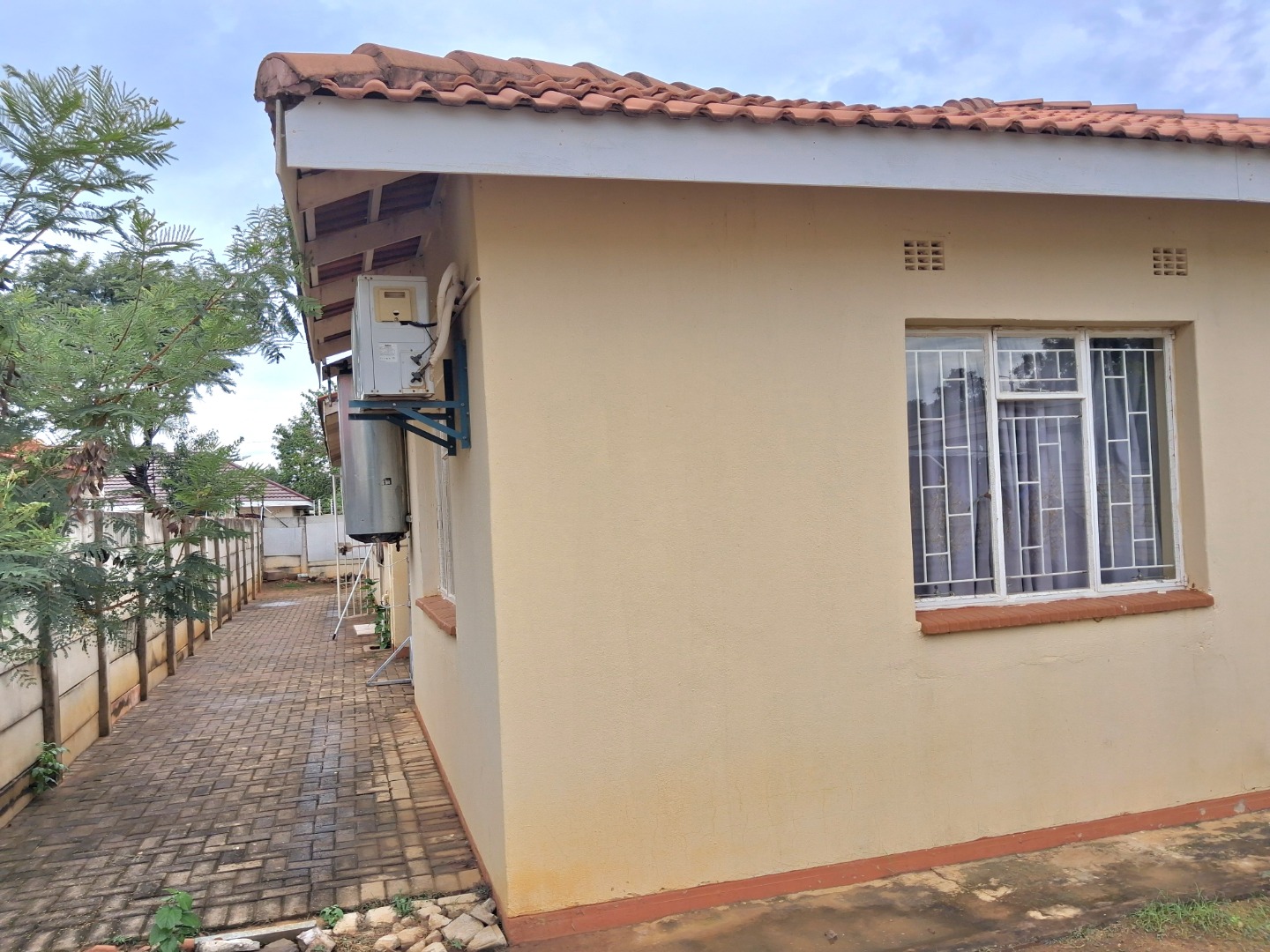 RE/MAX LISTING - BLOCK 9: 3 Bedrooms, 2 bathrooms, 1 ensuite master bedroom, fitted kitchen, dining room, lounge with air condition. The other bedroom has a fan. The yard is partly paved and there is plenty of space at the back of the house for more development. 600m2 plot size. Gated with electric fence.