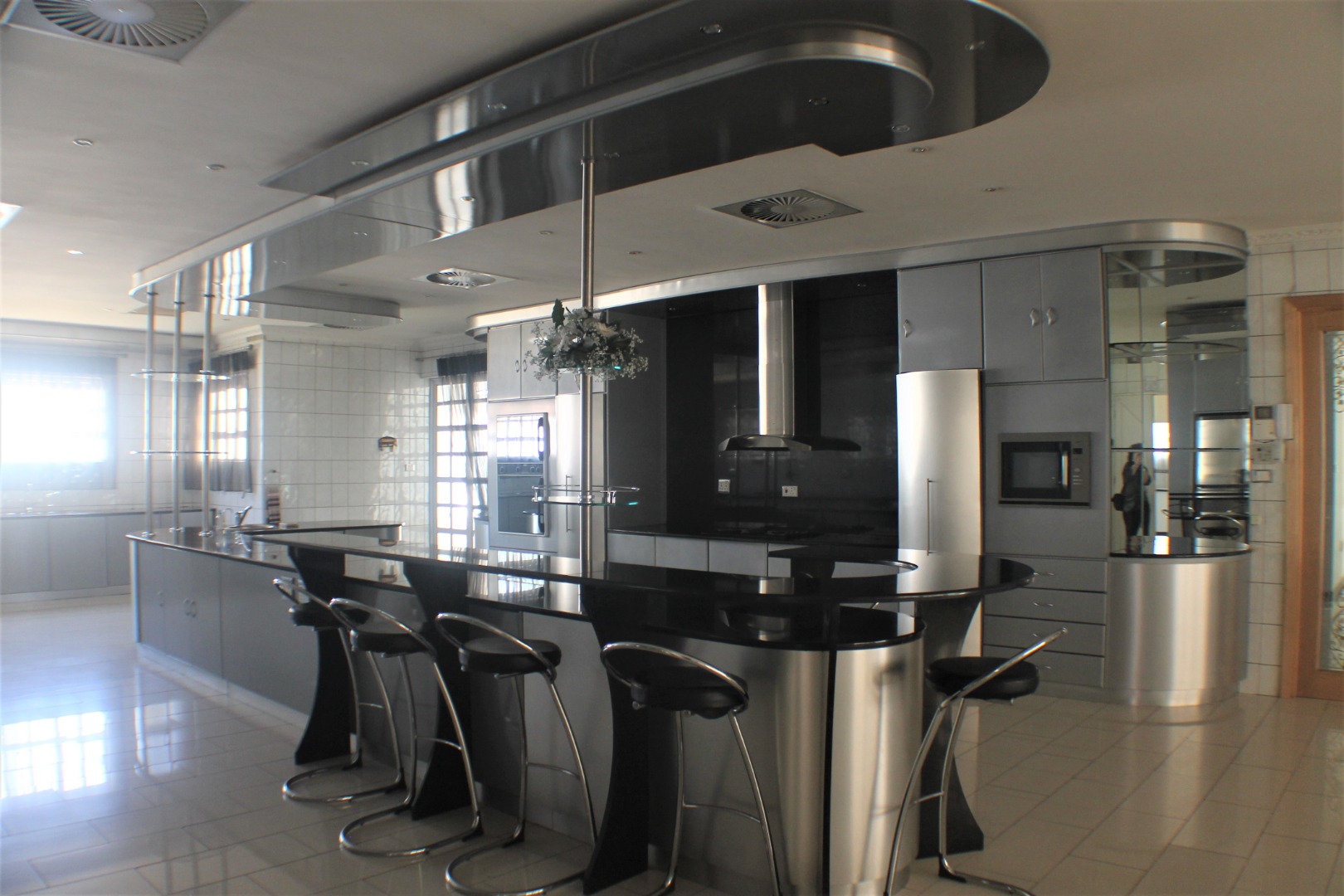 Extension 11. An absolutely impressive home to say the least. Boasting 5 large bedrooms all ensuite. As you enter a large entrance hall, you have a living room to the left plus a spacious TV room. Upstairs is a games room and guest suite, return down the dual staircase to a dining room, substantial gourmet kitchen with scullery, laundry and storage. A childrens' play room, a prayer room, a study and all the rooms are themed. There is a patio and built in braai, playground, indoor heated swimming pool, plus gym room. 5 garages, guard house, generator and water tanks. Located in the heart of Gaborone, prime area of Extension 11.
