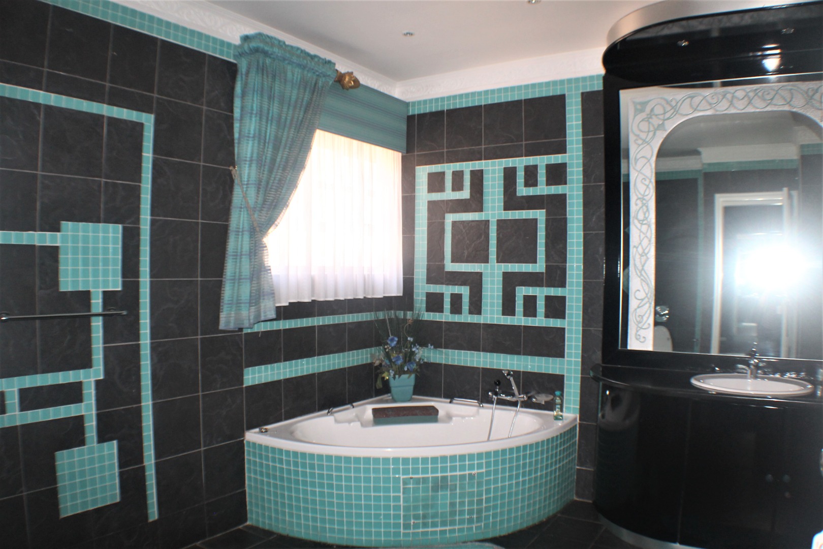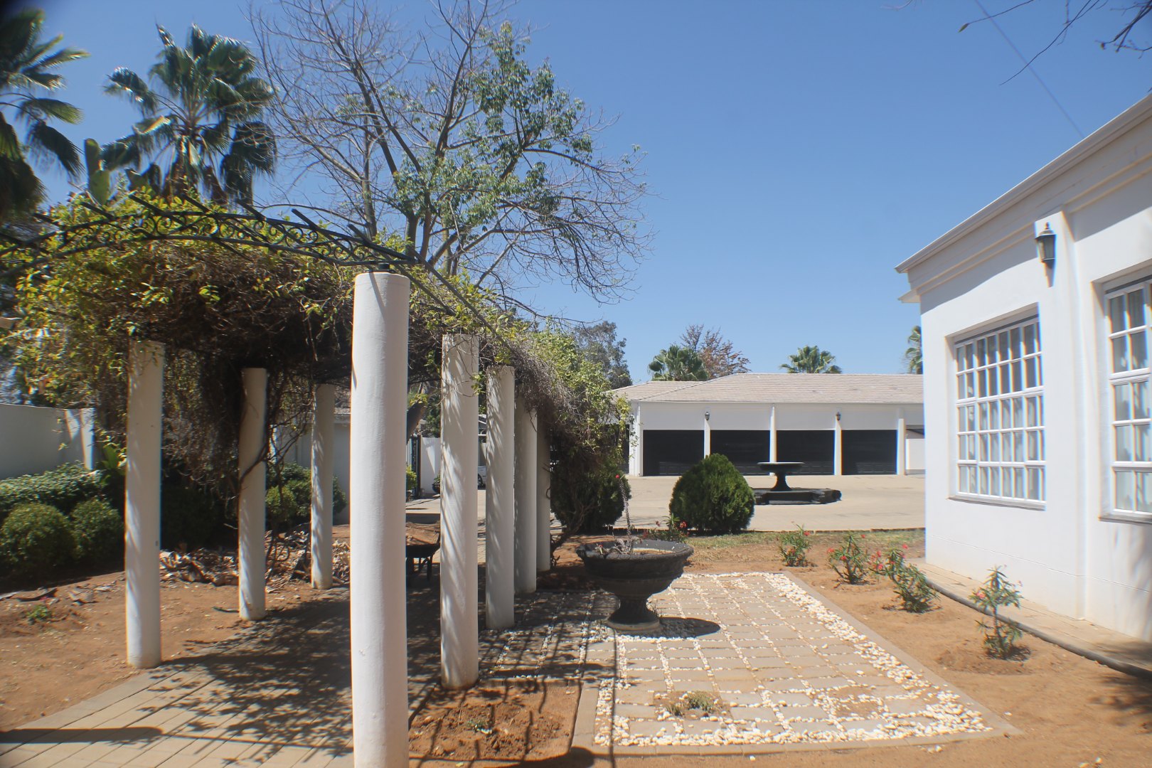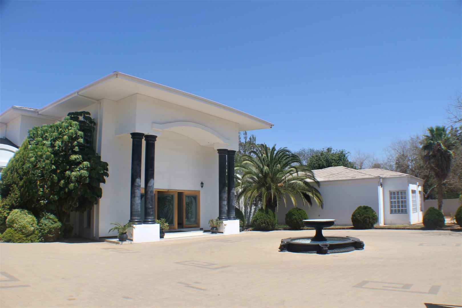 Extension 11. An absolutely impressive home to say the least. Boasting 5 large bedrooms all ensuite. As you enter a large entrance hall, you have a living room to the left plus a spacious TV room. Upstairs is a games room and guest suite, return down the dual staircase to a dining room, substantial gourmet kitchen with scullery, laundry and storage. A childrens' play room, a prayer room, a study and all the rooms are themed. There is a patio and built in braai, playground, indoor heated swimming pool, plus gym room. 5 garages, guard house, generator and water tanks. Located in the heart of Gaborone, prime area of Extension 11.