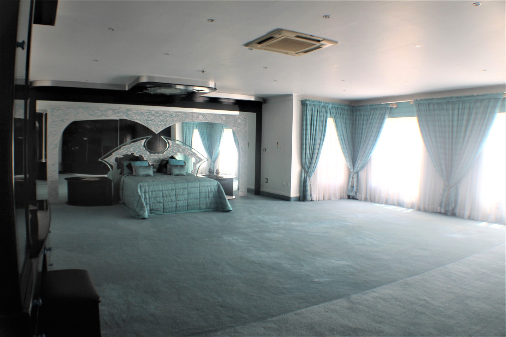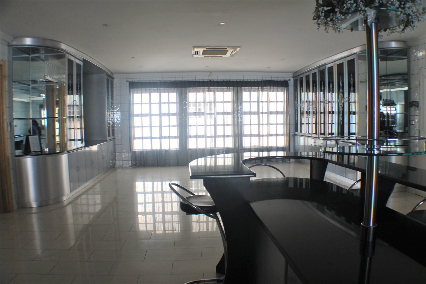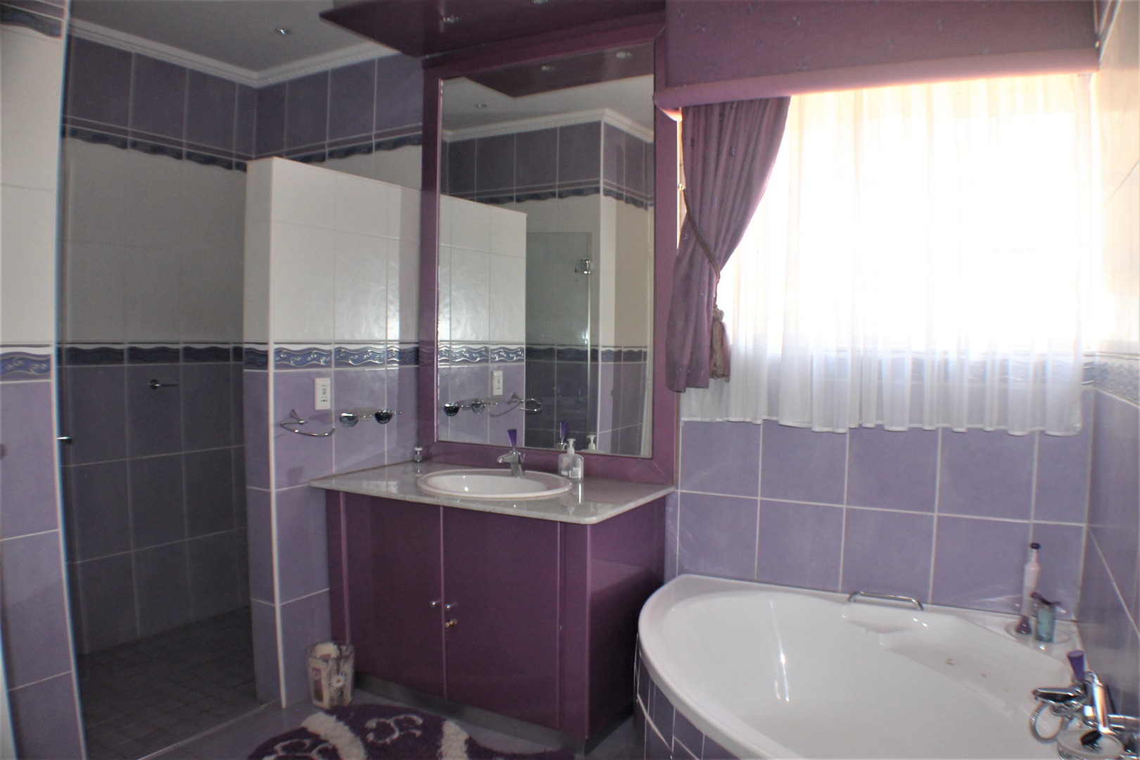 Extension 11. An absolutely impressive home to say the least. Boasting 5 large bedrooms all ensuite. As you enter a large entrance hall, you have a living room to the left plus a spacious TV room. Upstairs is a games room and guest suite, return down the dual staircase to a dining room, substantial gourmet kitchen with scullery, laundry and storage. A childrens' play room, a prayer room, a study and all the rooms are themed. There is a patio and built in braai, playground, indoor heated swimming pool, plus gym room. 5 garages, guard house, generator and water tanks. Located in the heart of Gaborone, prime area of Extension 11.