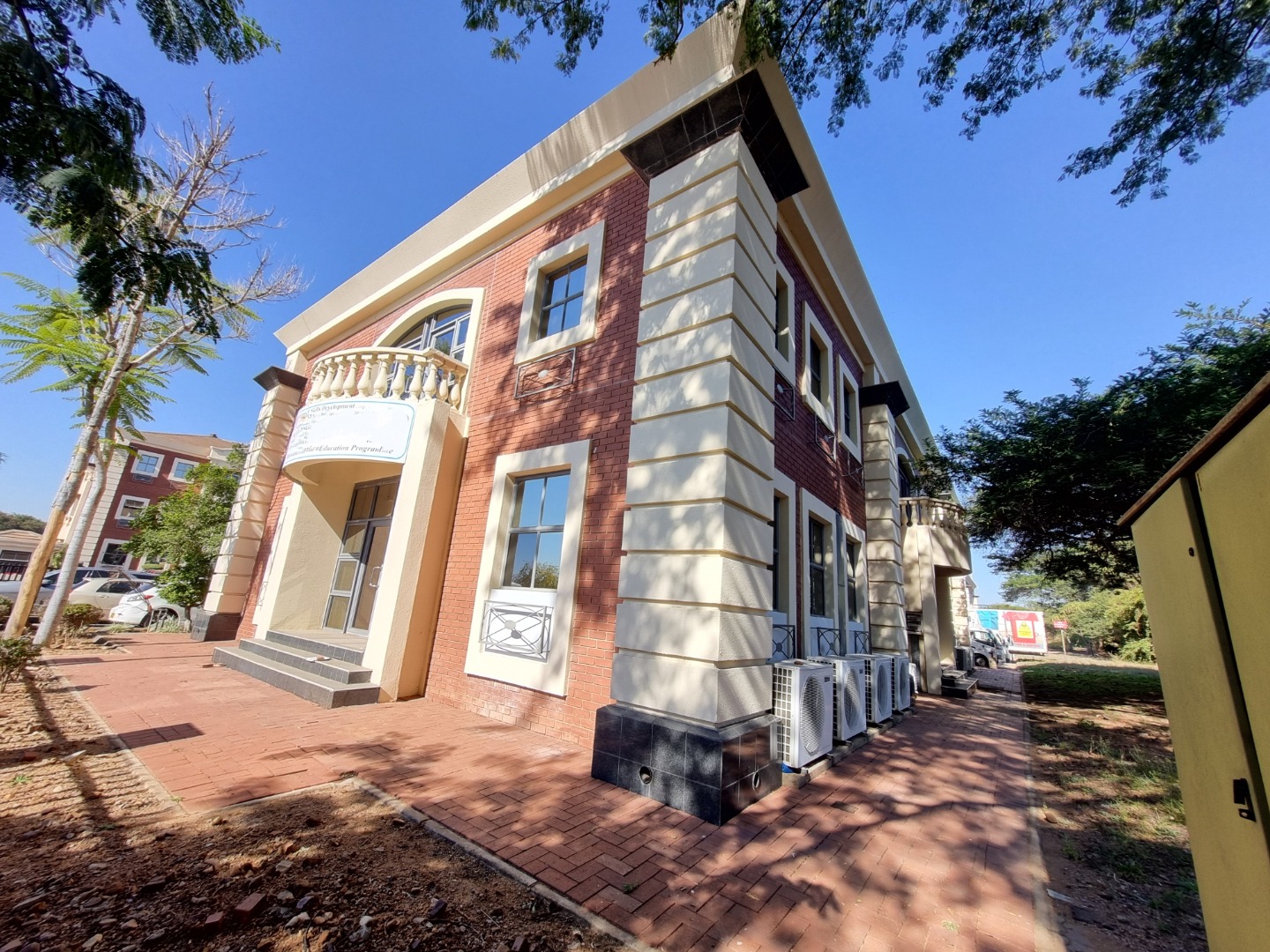 REMAX LISTING FAIRGROUNDS: AVAILABLE IMMEDIATELY: Prime location, this office block with main street frontage in this sought-after business district. Featuring 14 partitioned and several open-plan office spaces over the ground floor and 1st floor, main large conference room, kitchen, ablutions on each floor, server room, several balconies and 21 dedicated parking's (10 of which are covered parking's). Office block with excellent visibility and parking readily available for your business. Call/WhatsApp Thalia 72575773 to view by appointment.