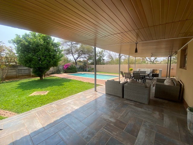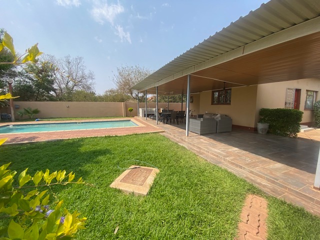 TLOKWENG - This property is currently operating as a guesthouse and offers 6 bedrooms, with 4 ensuite bathrooms and 1 sharing bathroom, spacious fitted kitchen in main house plus a smaller kitchen in the cottage. Both the cottage and the main house have a lounge and dining area. The outdoor space offers a great covered veranda overlooking swimming pool set in a lush well maintained garden with back up water tanks and there is also great security features. This property can continue to be used as a guesthouse or can easily convert back to a family residence. All this is set on a plot measuring 1184 m2.
