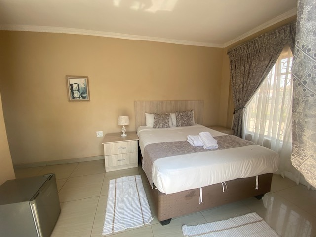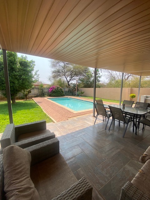 TLOKWENG - This property is currently operating as a guesthouse and offers 6 bedrooms, with 4 ensuite bathrooms and 1 sharing bathroom, spacious fitted kitchen in main house plus a smaller kitchen in the cottage. Both the cottage and the main house have a lounge and dining area. The outdoor space offers a great covered veranda overlooking swimming pool set in a lush well maintained garden with back up water tanks and there is also great security features. This property can continue to be used as a guesthouse or can easily convert back to a family residence. All this is set on a plot measuring 1184 m2.