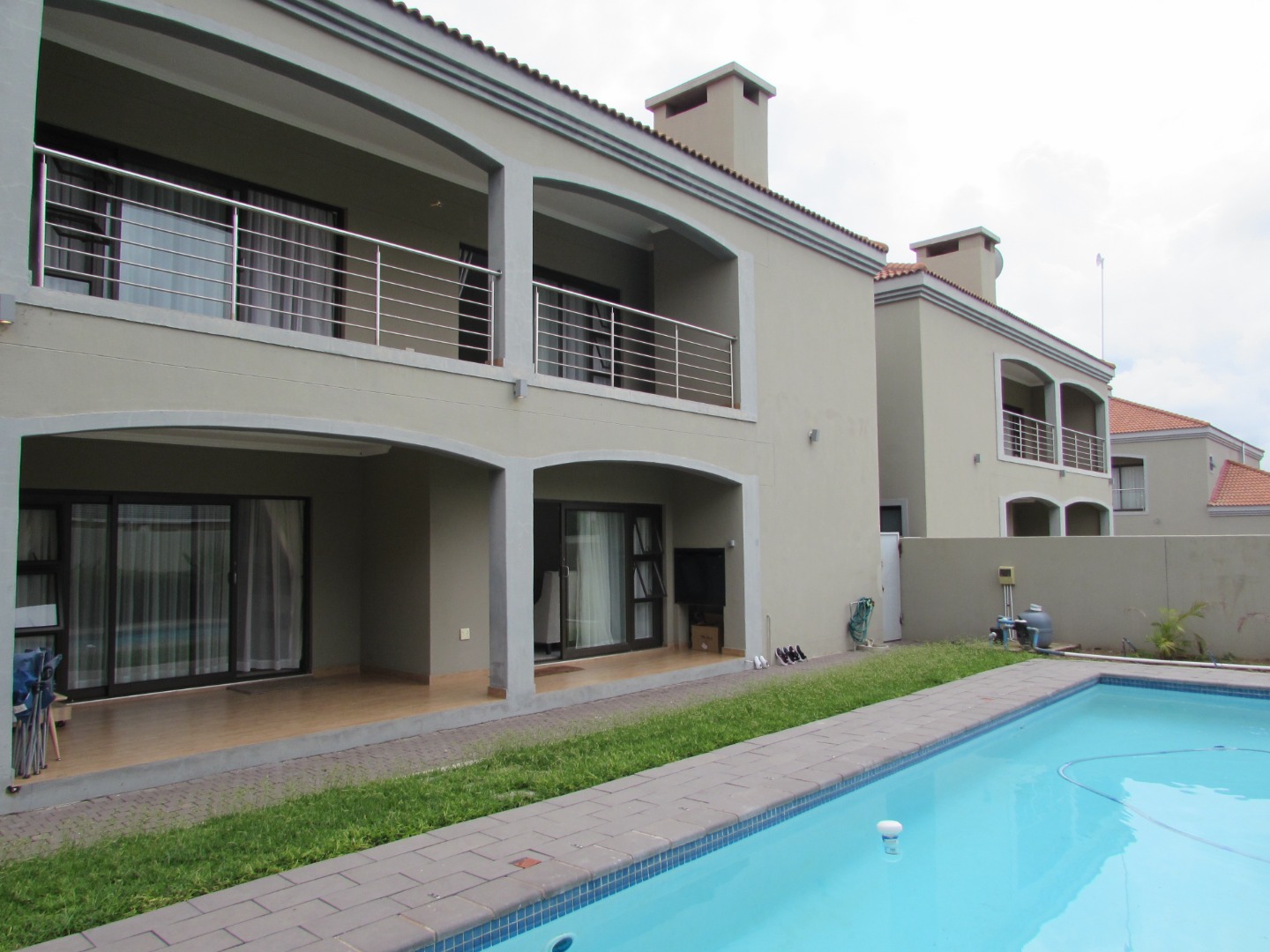PHAKALANE - Invest in a secure lifestyle opportunity. These sectional title townhouses offer 4 ensuite bedrooms, 2 lounges, dining room, fitted granite kitchen. Undercover patio with built-in braai,Swimming pool, staff accommodation or guest wing. A secure boomed complex with guarded entrance. Each individual garden measures approximately 170m2. Price excludes VAT.
