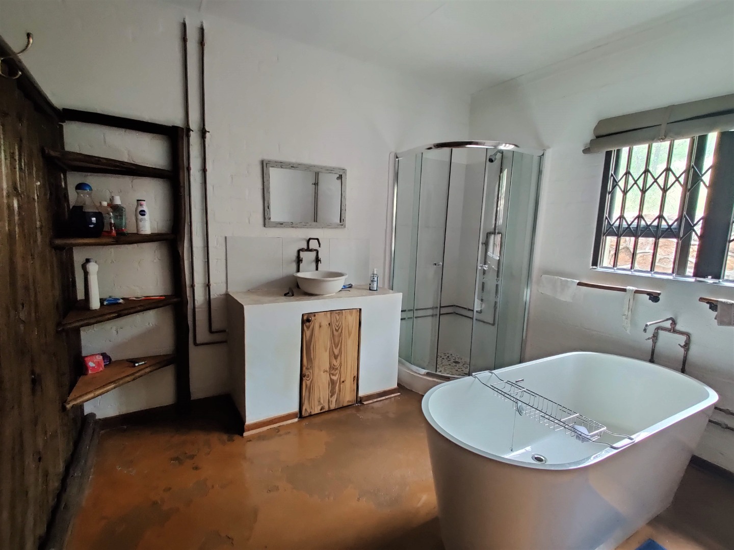 The balcony is where it all happens, just the place to relax by the fireplace for those chilly winter nights and a very large built-in-braai; also available is another braai area in the yard and a high viewing platform with views forever and an outdoor shower plus covered parking for two vehicles.