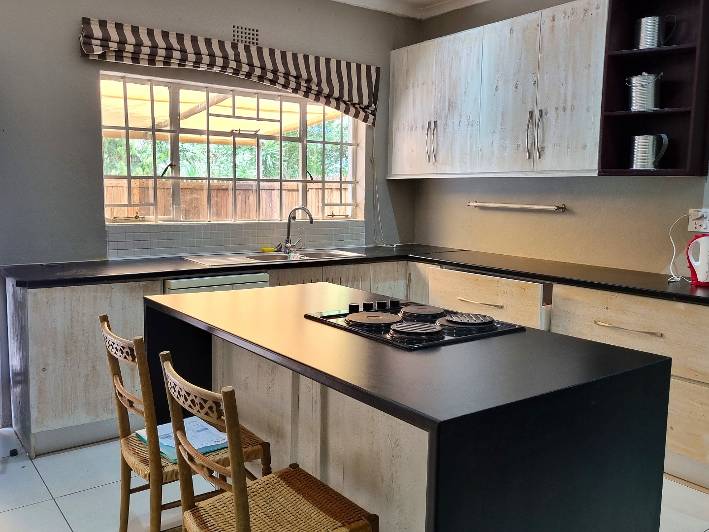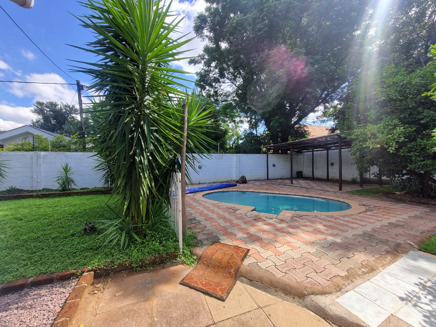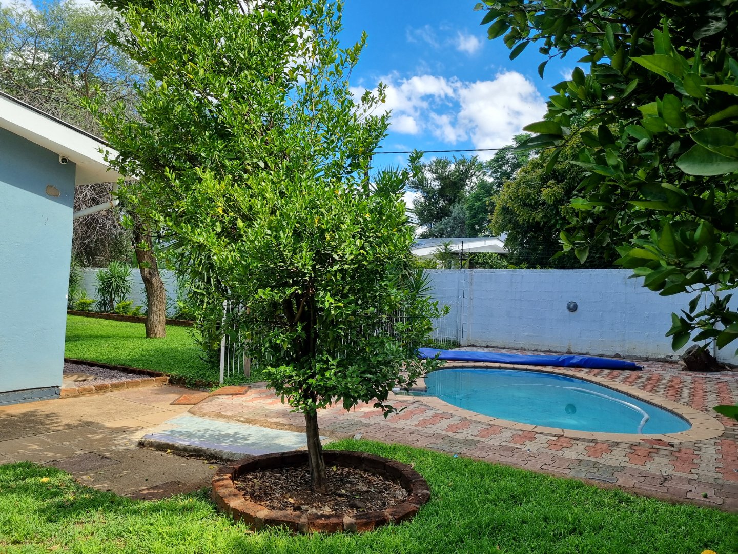 REMAX LISTING EXT 11 – FURNISHED, AVAILABLE IMMEDIATELY: rarely available, is this property located in a quiet cul-de-sac of this prime area of the city. Featuring a stylish furnished and refurbished elegant home on a 1657m2 plot, framed with lush garden and magnificent trees all round. The property offers a swimming pool in a quiet corner of the garden next to a covered entertainment space; a spacious lounge with feature fireplace, a light and bright dining area leading out from a well-appointed kitchen providing excellent storage, a breakfast counter, and space to enjoy cooking and gatherings of family and friends. The 3 bedrooms are all spacious with elevated finishes; the master suite is particularly large, showing lovely views of the garden and has an ensuite bathroom. There is an external garden cottage plus staff accommodation. Call /WhatsApp Thalia 72575773 to secure your private viewing of this gem of a property. Don’t hesitate!