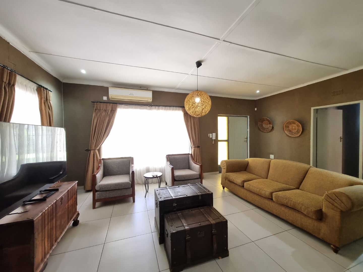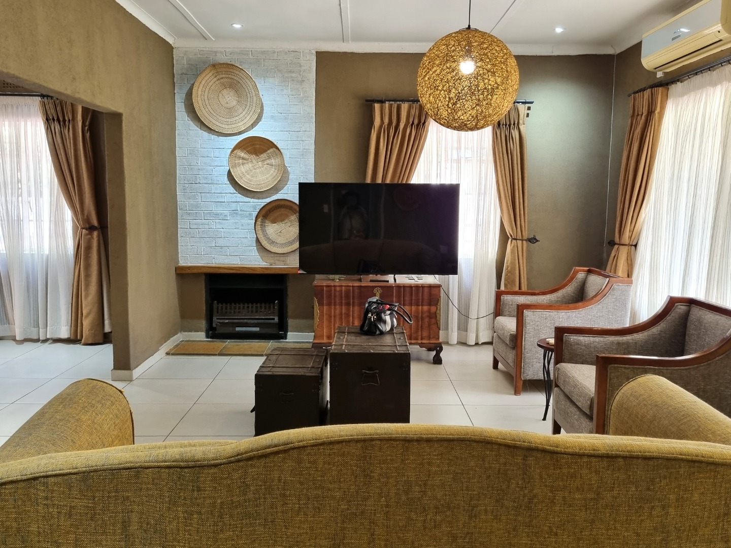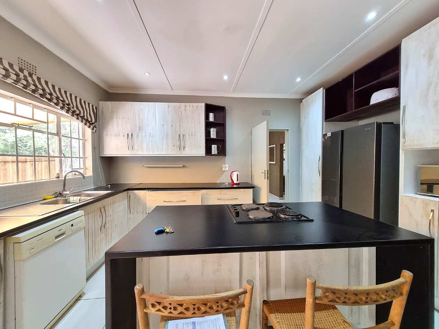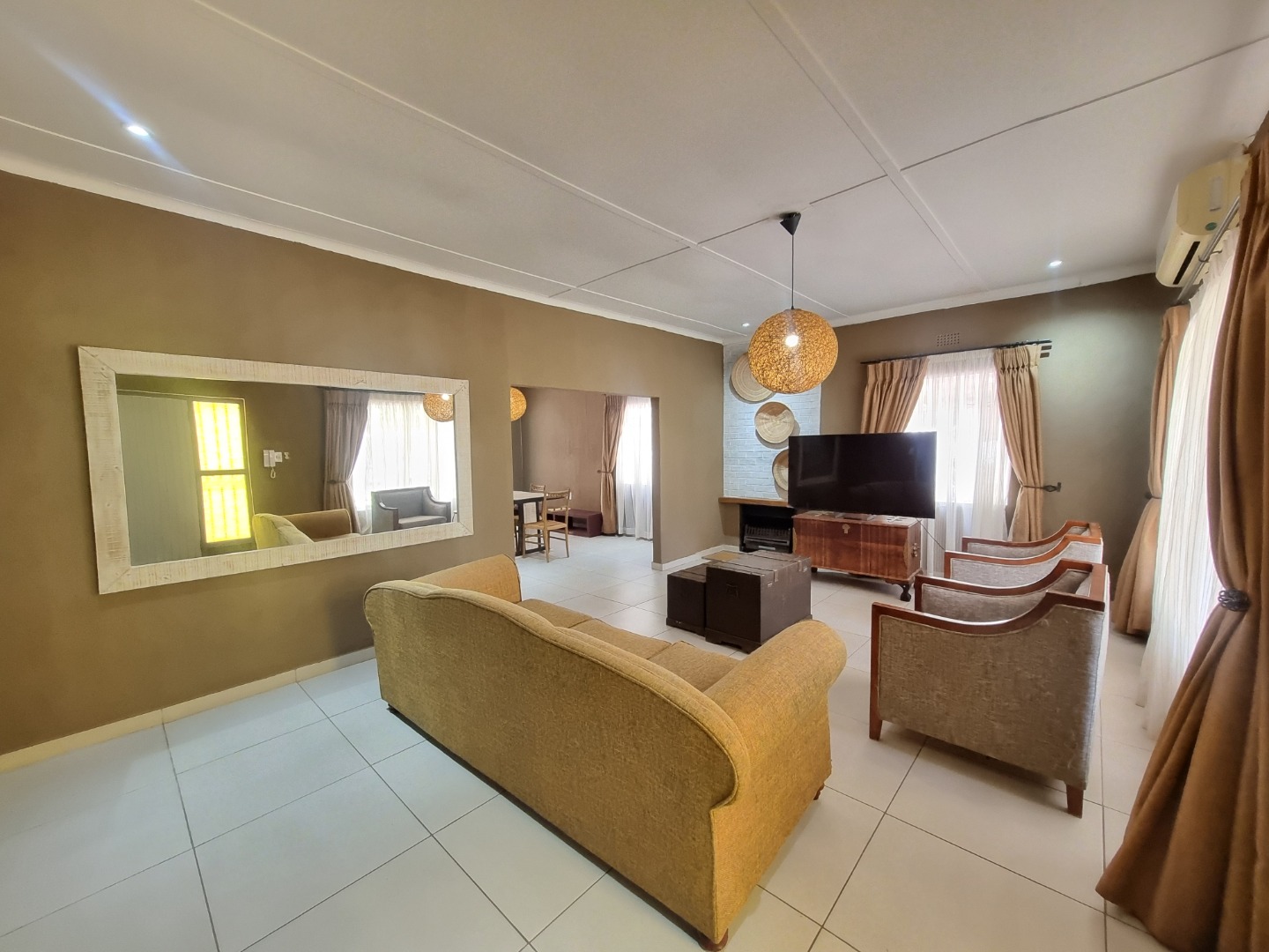 REMAX LISTING EXT 11 – FURNISHED, AVAILABLE IMMEDIATELY: rarely available, is this property located in a quiet cul-de-sac of this prime area of the city. Featuring a stylish furnished and refurbished elegant home on a 1657m2 plot, framed with lush garden and magnificent trees all round. The property offers a swimming pool in a quiet corner of the garden next to a covered entertainment space; a spacious lounge with feature fireplace, a light and bright dining area leading out from a well-appointed kitchen providing excellent storage, a breakfast counter, and space to enjoy cooking and gatherings of family and friends. The 3 bedrooms are all spacious with elevated finishes; the master suite is particularly large, showing lovely views of the garden and has an ensuite bathroom. There is an external garden cottage plus staff accommodation. Call /WhatsApp Thalia 72575773 to secure your private viewing of this gem of a property. Don’t hesitate!