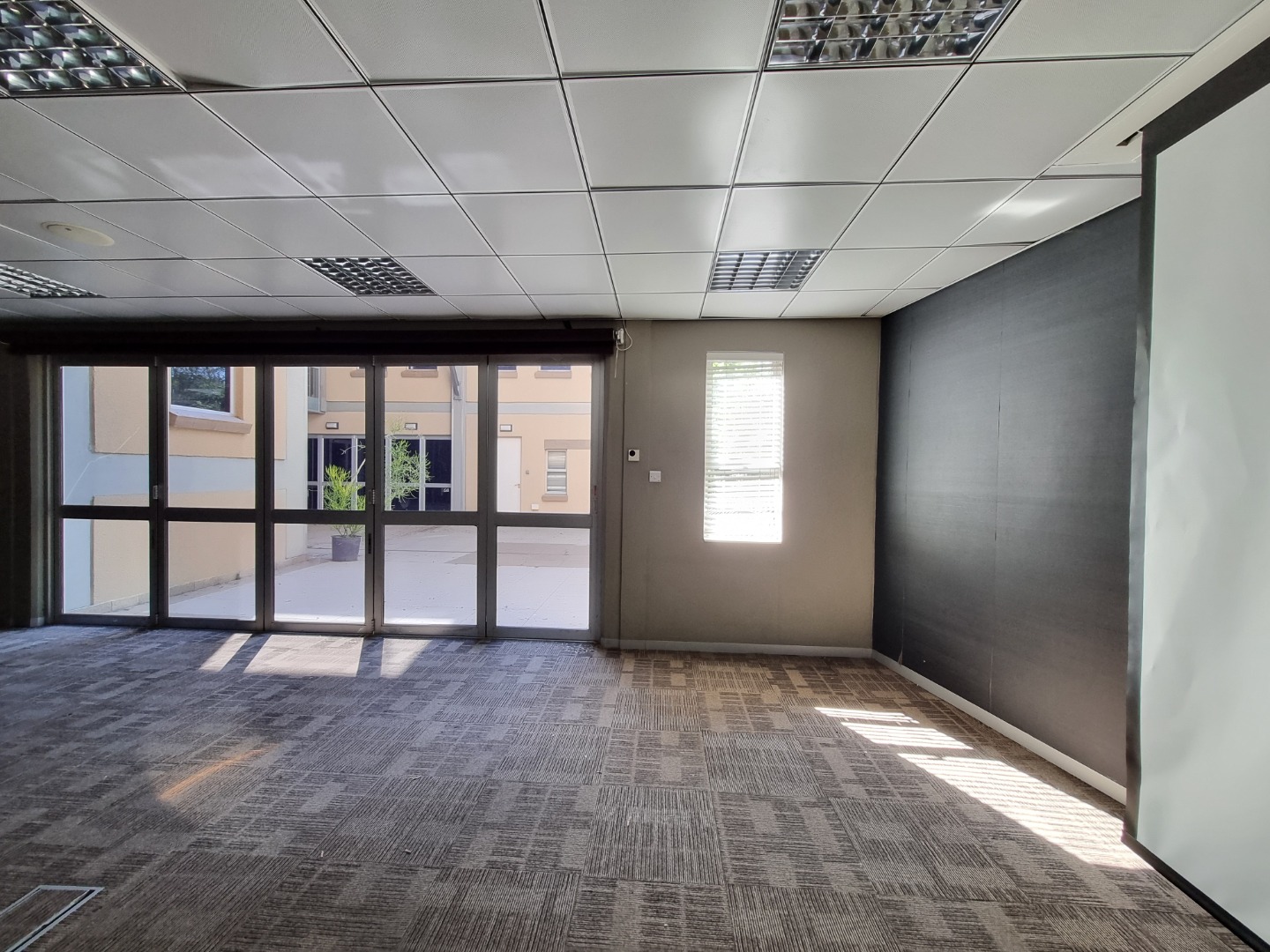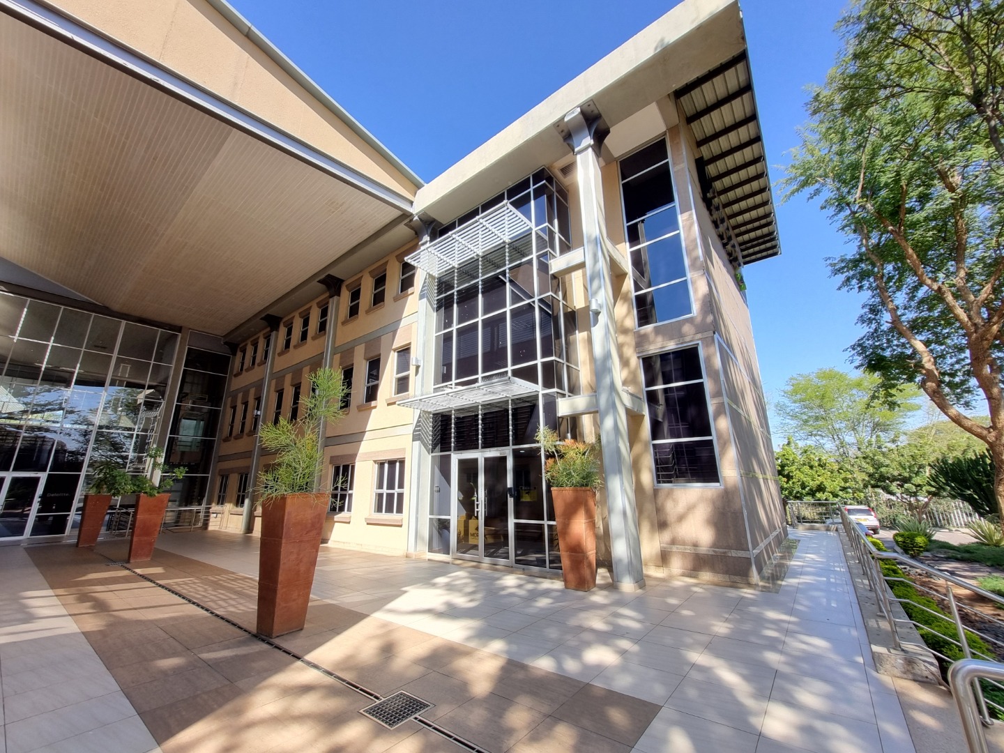 REMAX LISTING FAIRGROUNDS: Ground floor: 603m2: Prime office space in this established business district, in proximity to major banks, professional services, insurance firms, Government services, malls and hotels. Featuring a magnificent road-facing office block with ground floor space providing 2 large boardrooms/training rooms with adjacent entertainment areas, meeting rooms, partitioned offices, open-plan spaces, outdoor patio area, kitchens, ablutions, backup generator and water and more. 24-hour on-site security at entrance. Extensive basement and surface parking available additional fee. Natural light pours into this office building and the large window-scapes provide views to the external vegetation and district all round. Available immediately. VAT and Levy (P10,854) is applicable. Please call / WhatsApp Thalia 72575773 to appoint a viewing.
