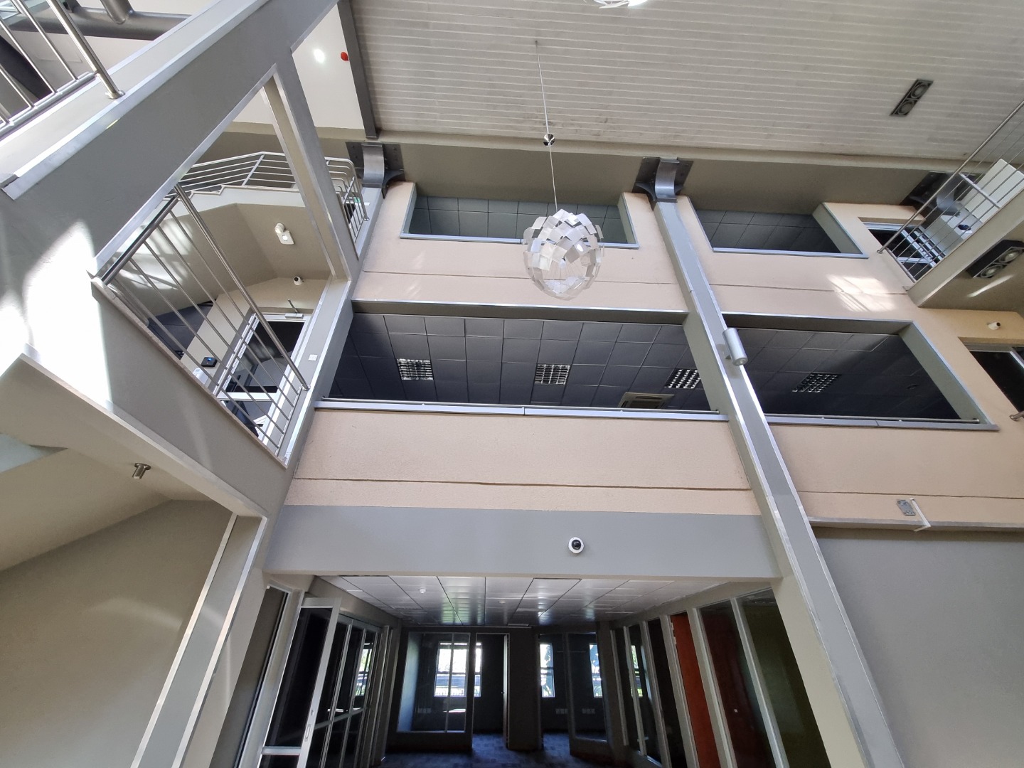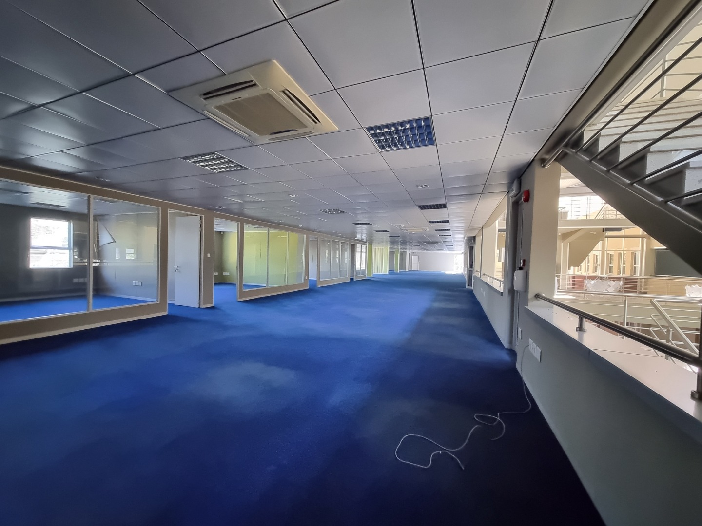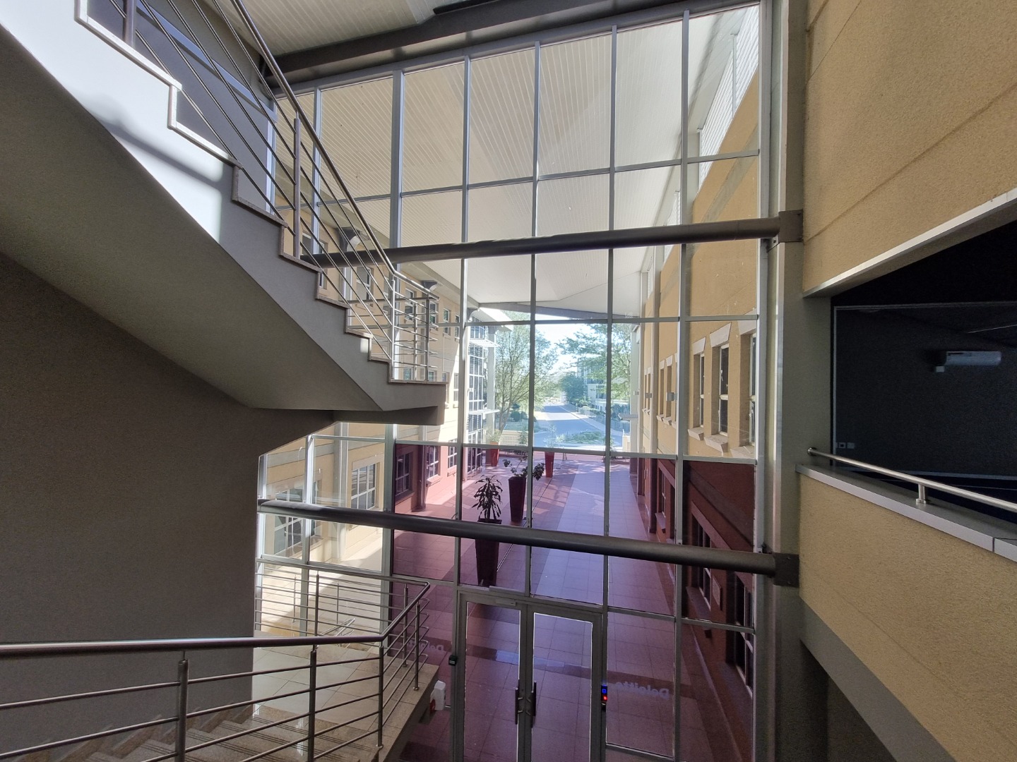REMAX LISTING FAIRGROUNDS: 1st floor 1054m2: Prime office space in this established business district, in proximity to major banks, professional services, insurance firms, Government services, malls and hotels. Featuring a magnificent road-facing office block with several partitioned offices, open-plan spaces, outdoor patio area, kitchens, ablutions, backup generator and water and more. 24-hour on-site security at entrance. Extensive basement and surface parking available (additional fee). Natural light pours into this office building and the large window-scapes provide views to the external vegetation and district all round. Available immediately. VAT and Levy (P18,972) is applicable. Please call / WhatsApp Thalia 72575773 to appoint a viewing.