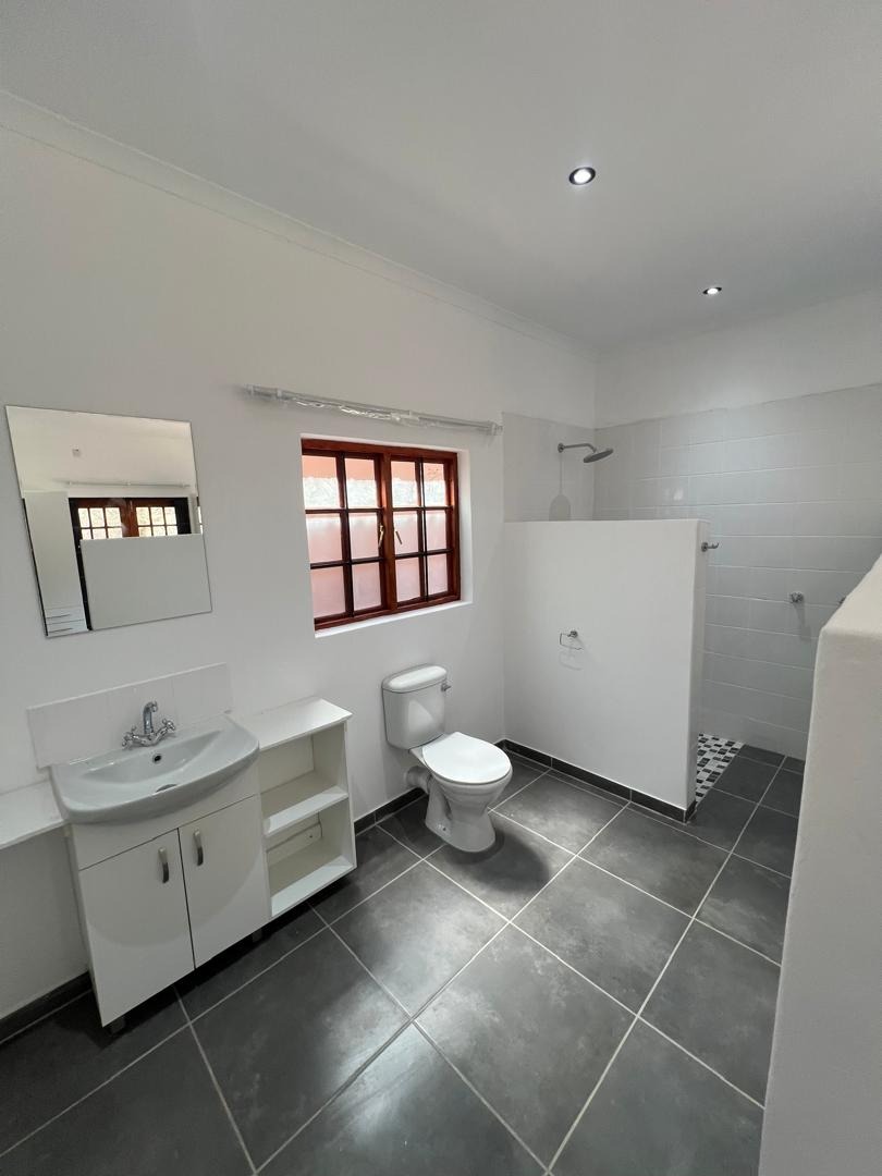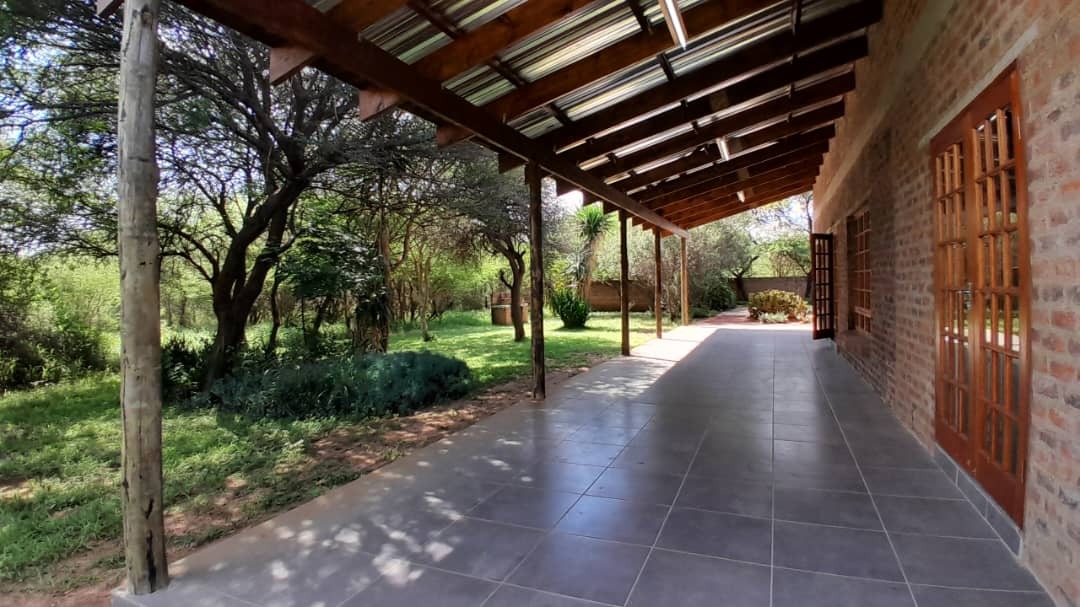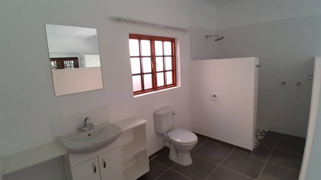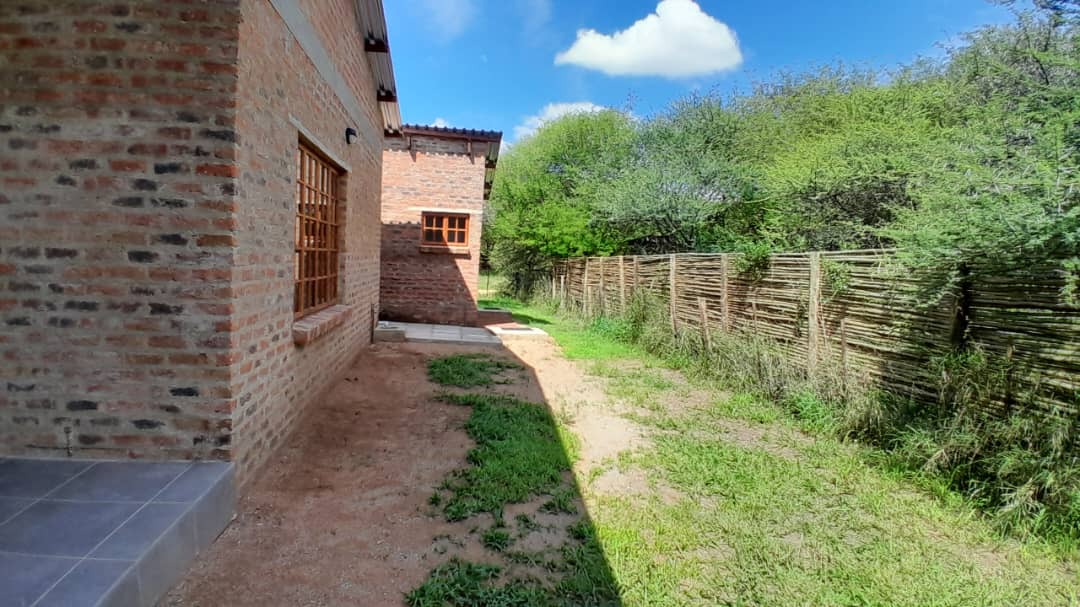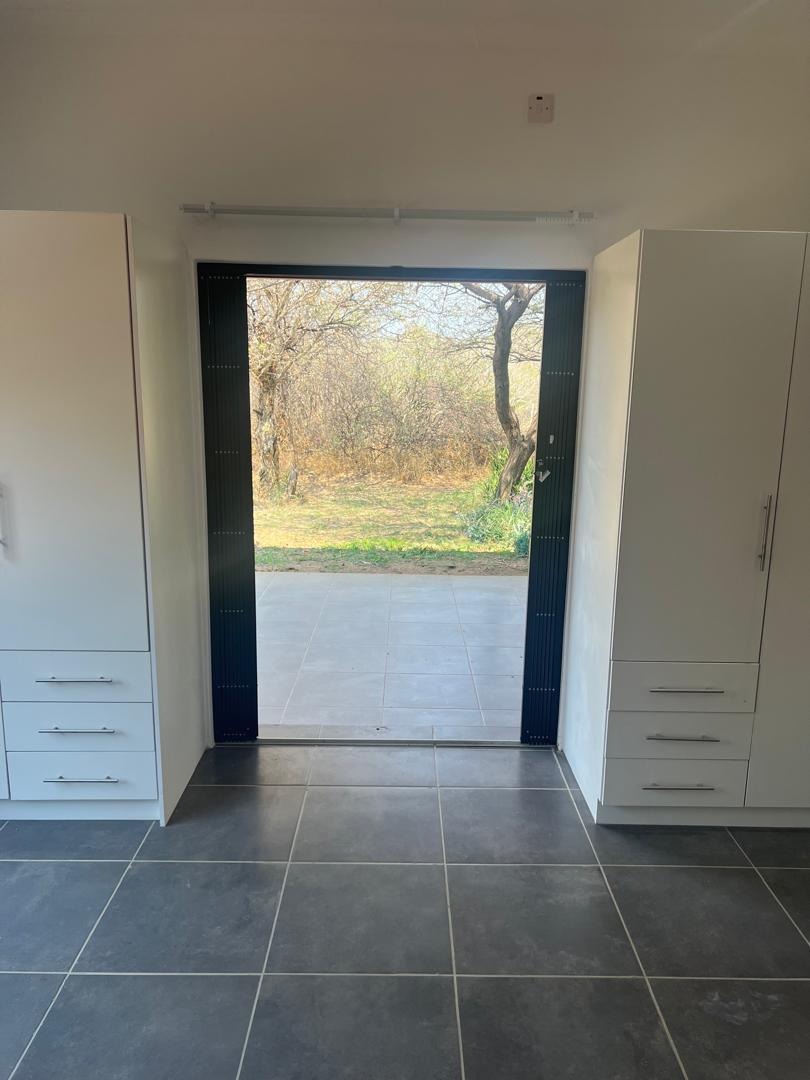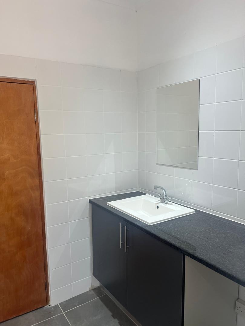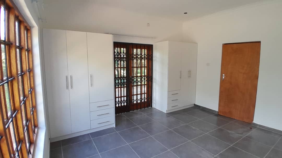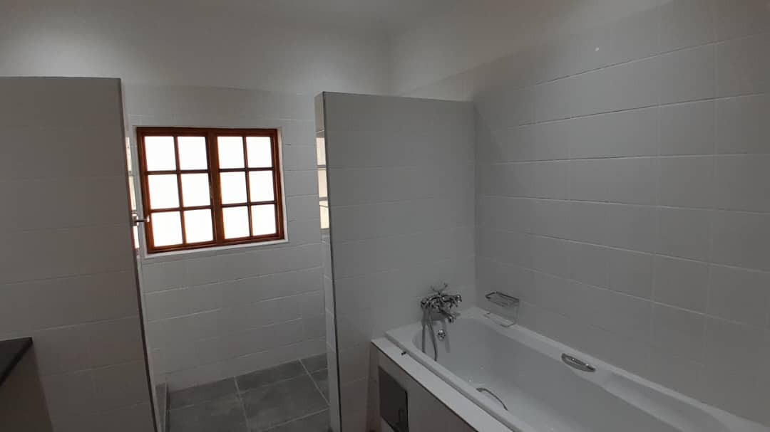 GABORONE NORTH: This modern 3-bedroom, 3-bathroom rental home is situated in Gaborone North, Gaborone. Each bedroom features an en-suite bathroom, ensuring privacy and comfort. The residence boasts a spacious, open-plan layout with high vaulted ceilings, exposed wooden beams, contemporary dark tiled flooring, and bright white walls. The kitchen includes a modern island with an integrated cooktop and ample white cabinetry. Enjoy the private swimming pool and patio area, perfect for relaxation. Security is enhanced with an access gate, electric fencing, a fully walled perimeter, and window security bars. Air cooling fans and built-in wardrobes complete this unfurnished property, offering a comfortable living experience.