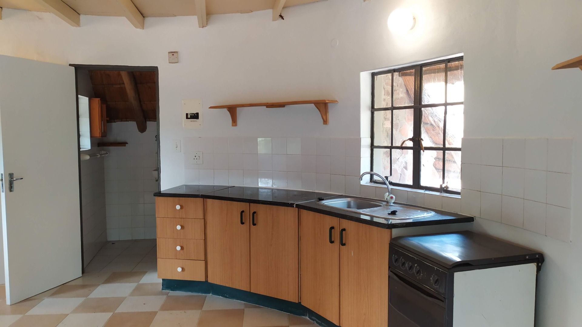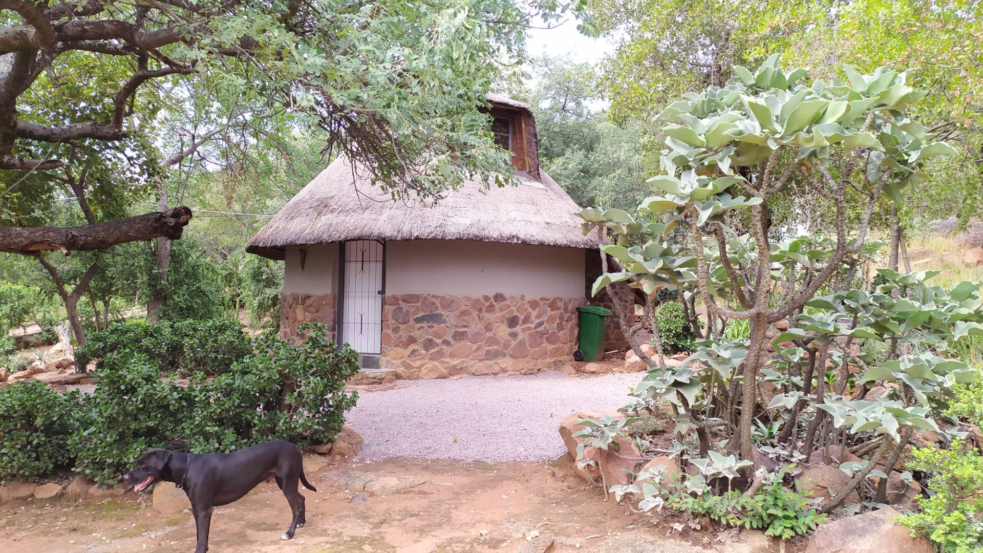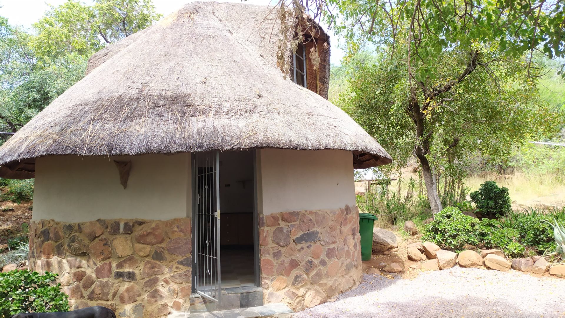 REMAX LISTING GABANE - Adorable thatch cottage nestled in the hills of this country setting just approximately 11km from Gaborone. Offering an open plan lounge/dining area with fitted kitchen with stove, a bathroom; the bedroom is in the loft upstairs. Featuring stunning views, meandering walkways, a braai/entertainment area and lots of trees and vegetation. Levy included in rental, includes fortnightly garden cleaning, security guard at entrance, daily refuse removal. Wake up to the sound of birds in the lush environment. Call/WhatsApp 72575773