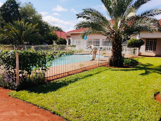 NOTWANE, AVAILABLE IMMEDIATELY - Located in a quiet setting with peaceful bush surroundings is this well presented family home on large, secure plot. The home offers 4 bedrooms, 4 bathrooms, large living spaces and fitted kitchen as well as fitted study / home office all leading out to covered veranda overlooking established well treed garden and swimming pool.