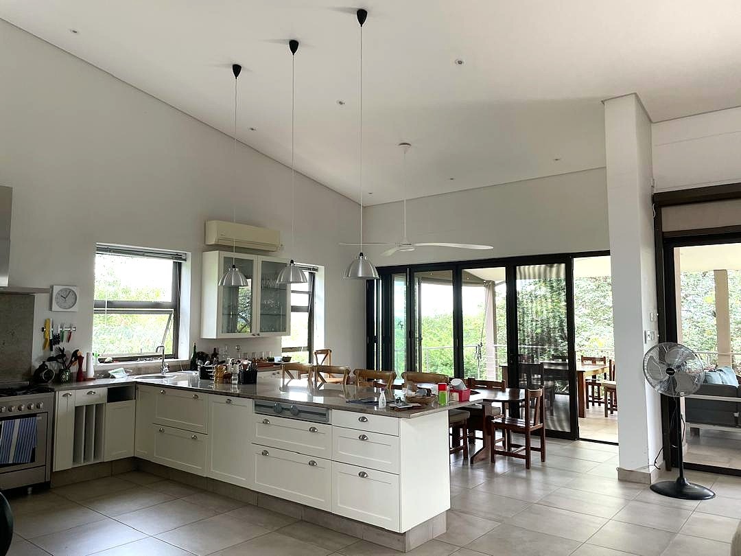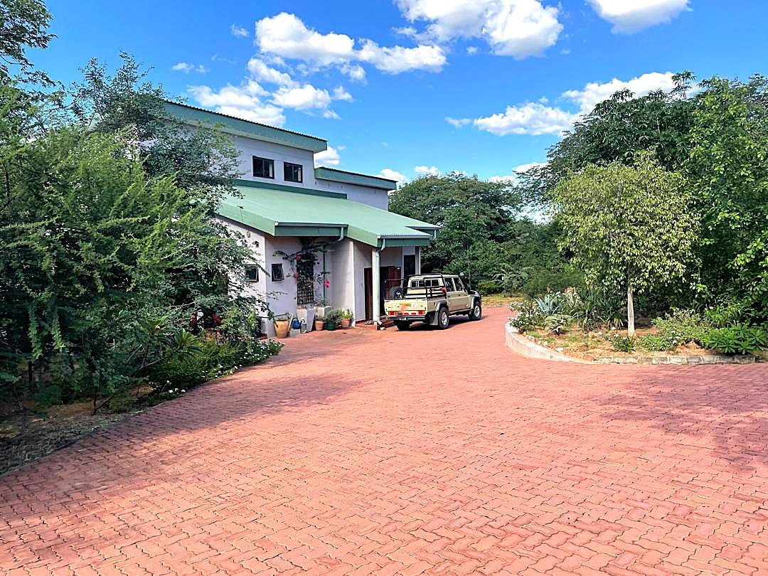 REMAX LISTING KAZUNGULA – Unique location in the well-known Chobe District of northeastern Botswana, is this property set on a hill on the edge of a Zambezi teak forest, featuring mature trees and overlooking views where 4 countries converge, one can see the river in the distance, enjoying the spectacular sunsets and sunrises year-round. Birds are abundant and game in the area and can be heard frequently. The Chobe National Park is approx. 10km away and the Victoria Falls is an easy 40 minutes just over the border. This property comprises of the main house plus 3 x 2-bedroom self-contained luxury cottages tucked away on private spots around the property and a swimming pool perfect for hot summer days. The main house has incredible design and style for enjoyment of the scenic views and spaces from the various large balconies and lush garden. Featuring a multi-level 3-bedroom home, all with ensuite bathrooms, 2 lounges, study, dining area open plan with a well-appointed kitchen with breakfast counter, separate scullery, walk-in storeroom. The home has large picture windows all round and the patio doors fold right back and brings the outside landscape right into your uninterrupted view. A fully air-conditioned home, good security features, triple carport, elephant-proof boundary fencing, 2 x 10,000 litre water tanks, 3 phase power, dual water-heating system, automatic 25kva JCB generator, electric gate – all you would wish for and more. With potential for tourism accommodation, guest house, this property is perfectly located for a getaway home in the bush or a mini lodge with option to develop this 1,65ha property further to its full potential. Rarely available in this area, this home awaits you.