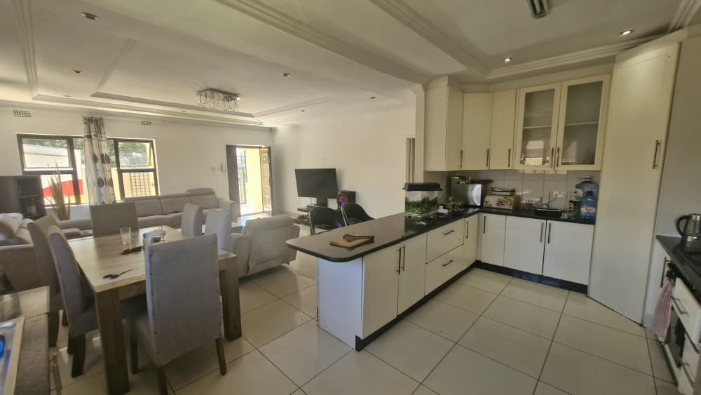 Outside, you can enjoy some fresh air outside with your morning coffee or an evening braai. Parking is a breeze with a double garage and two additional parking spaces, all neatly paved. And for added convenience, there are staff quarters on the property. An access gate provides a touch of security for your peace of mind.
