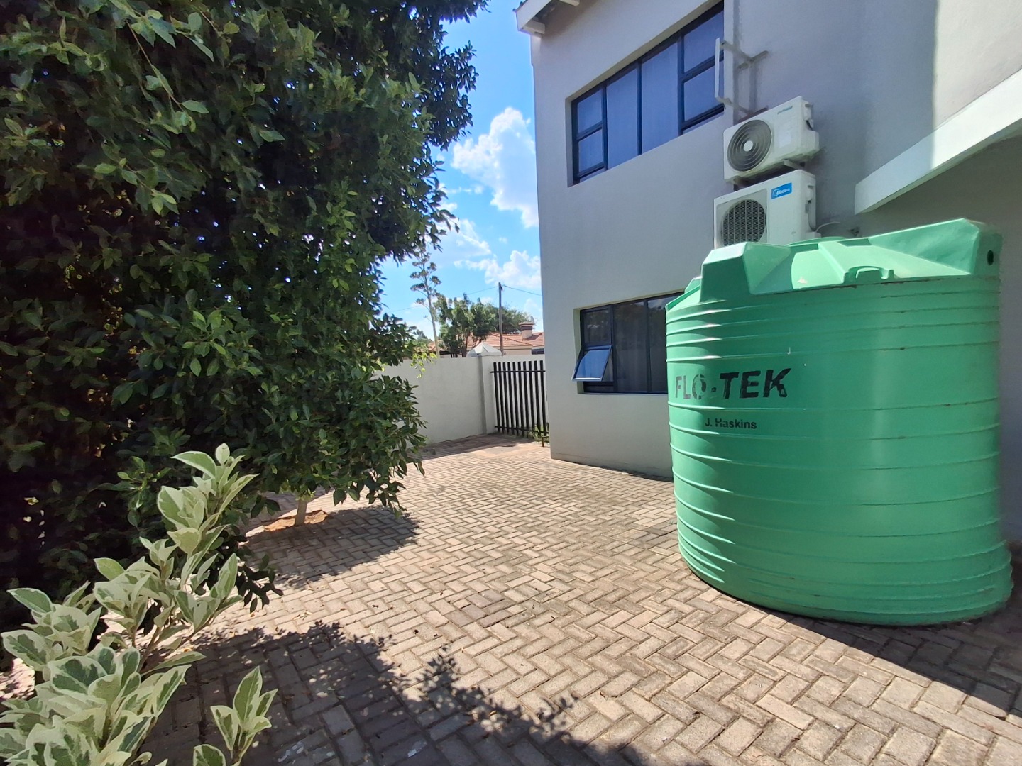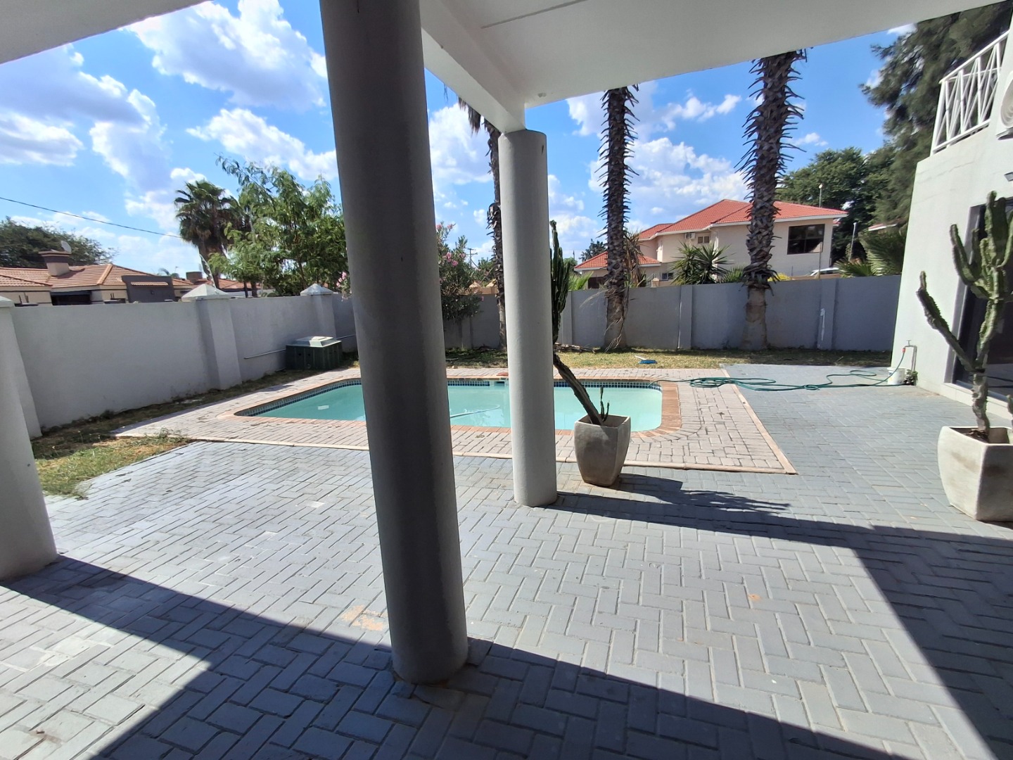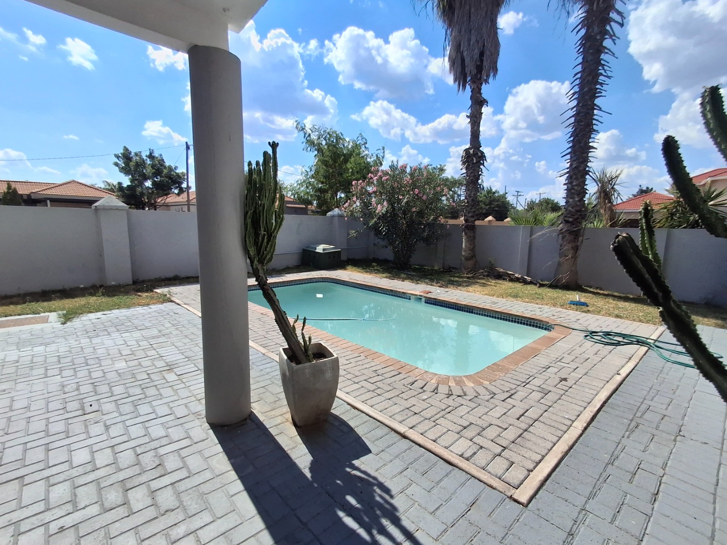 The outdoor space is quite impressive, creating a private oasis for leisure and recreation. A sparkling swimming pool beckons on warm days, complemented by a well - maintained garden, ideal for gatherings or quiet contemplation. Practical features include a double garage, an additional parking bay on the side, and a charming balcony, enhancing the property's appeal. Pet-friendly, this home also benefits from water tanks, promoting sustainable living.