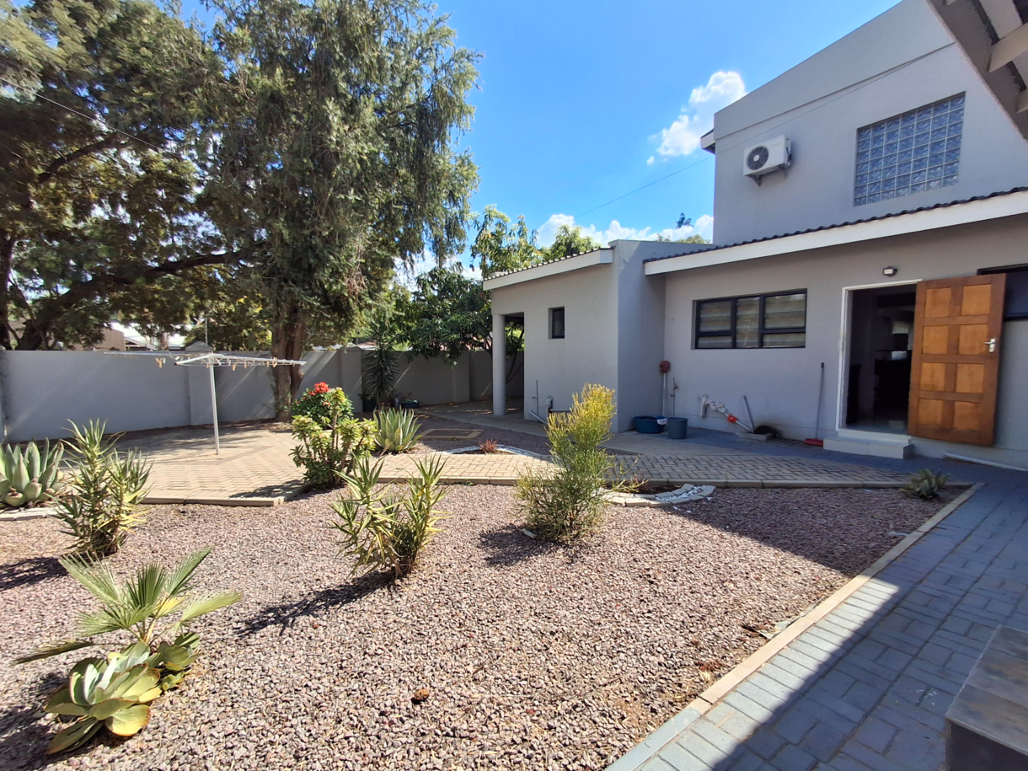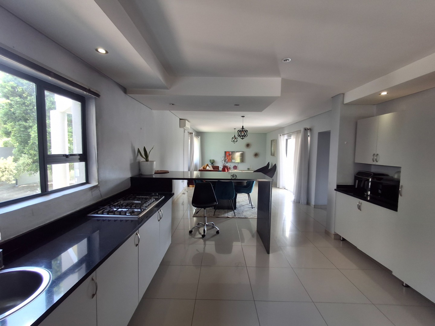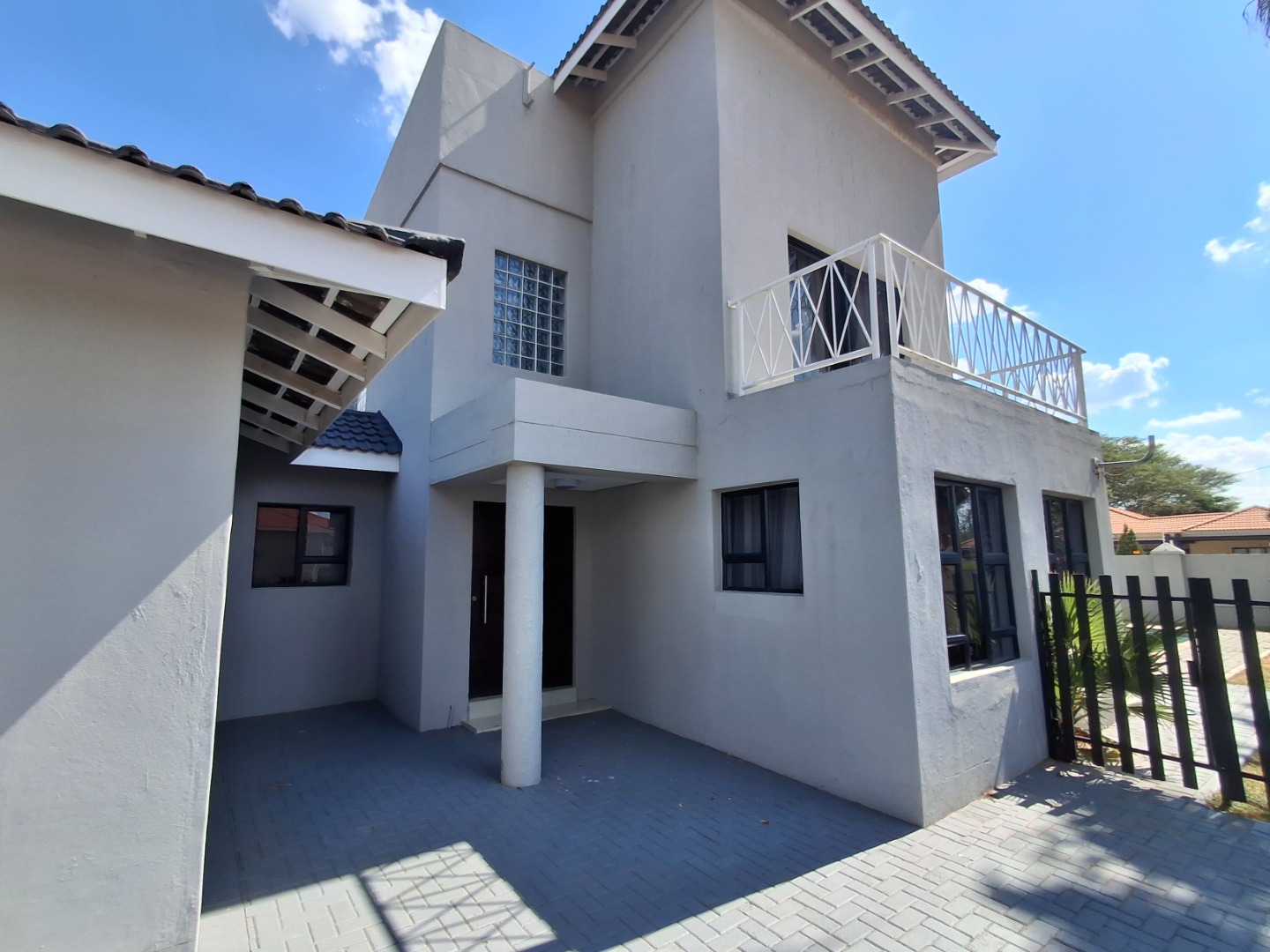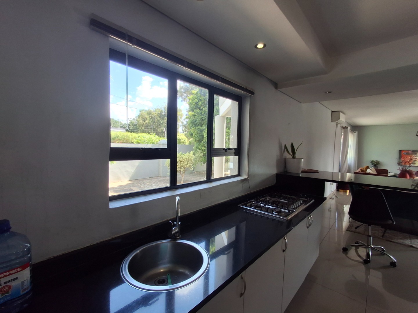 RE/MAX LISTING: BOTSWANA - GABORONE - PHAKALANE - PHASE ONE AREA: Discover an exquisite sanctuary nestled within a prestigious gated community in Phakalane, Gaborone, Botswana. This meticulously designed residential offering presents an elevated lifestyle for the discerning homeowner. The residence boasts a seamless integration of indoor and outdoor living, featuring an inviting open-plan layout that effortlessly connects the dining area with an expansive lounge, perfect for both grand entertaining and intimate relaxation. Air-conditioning ensures year-round comfort, while elegant sliding doors invite natural light and gentle breezes.