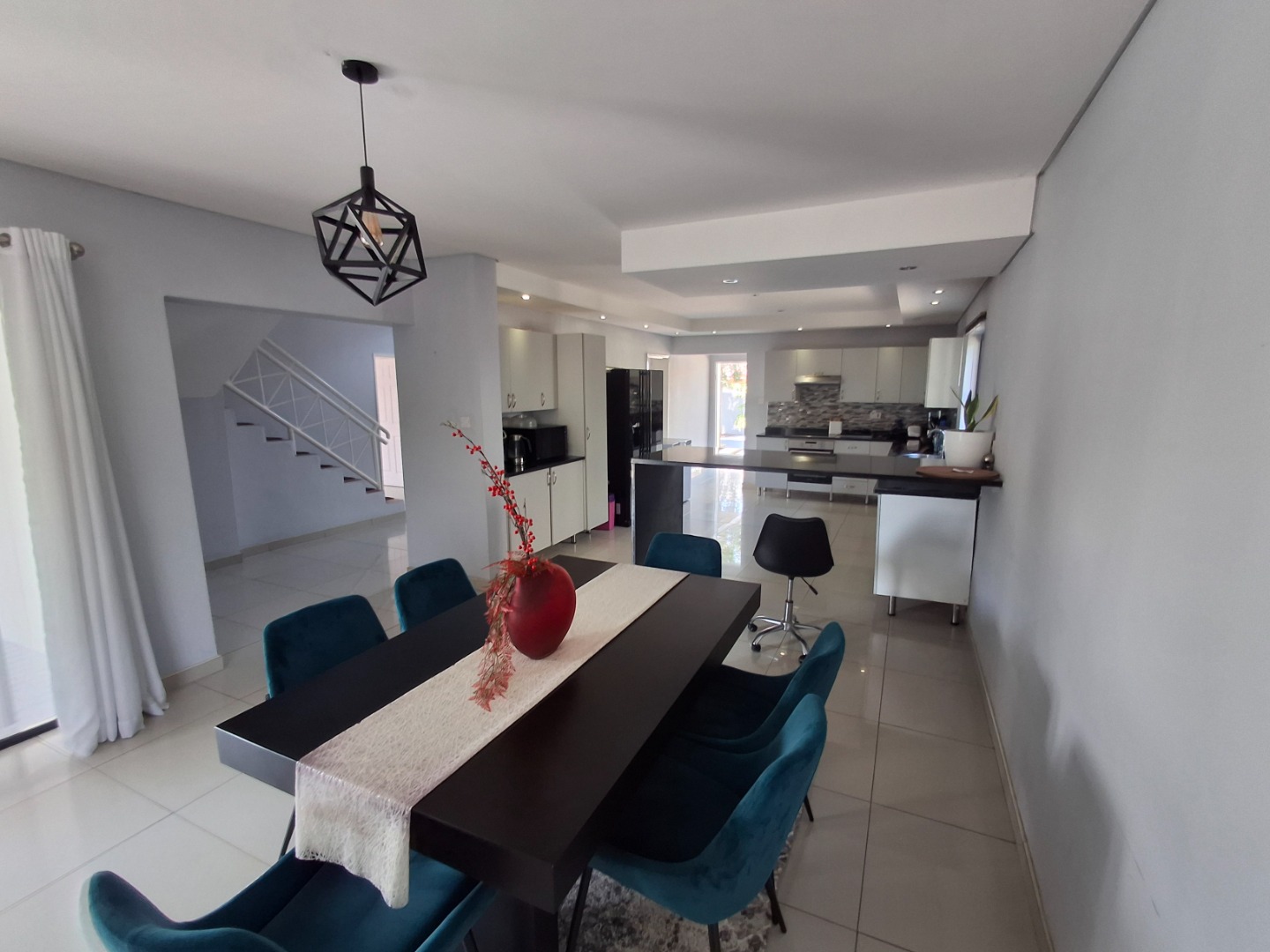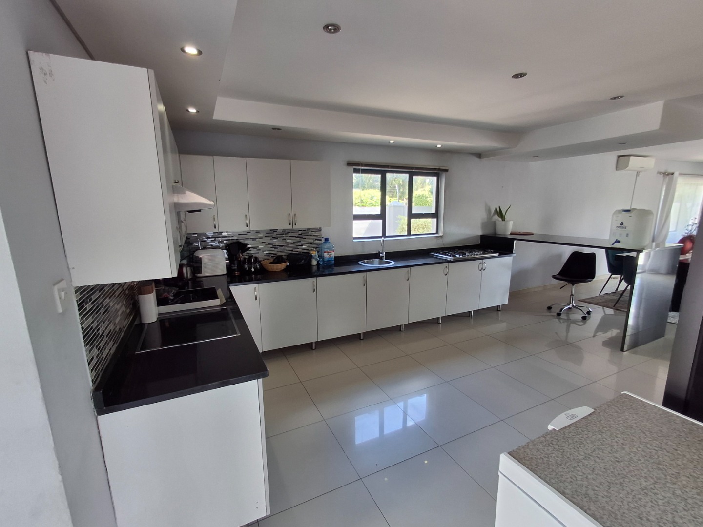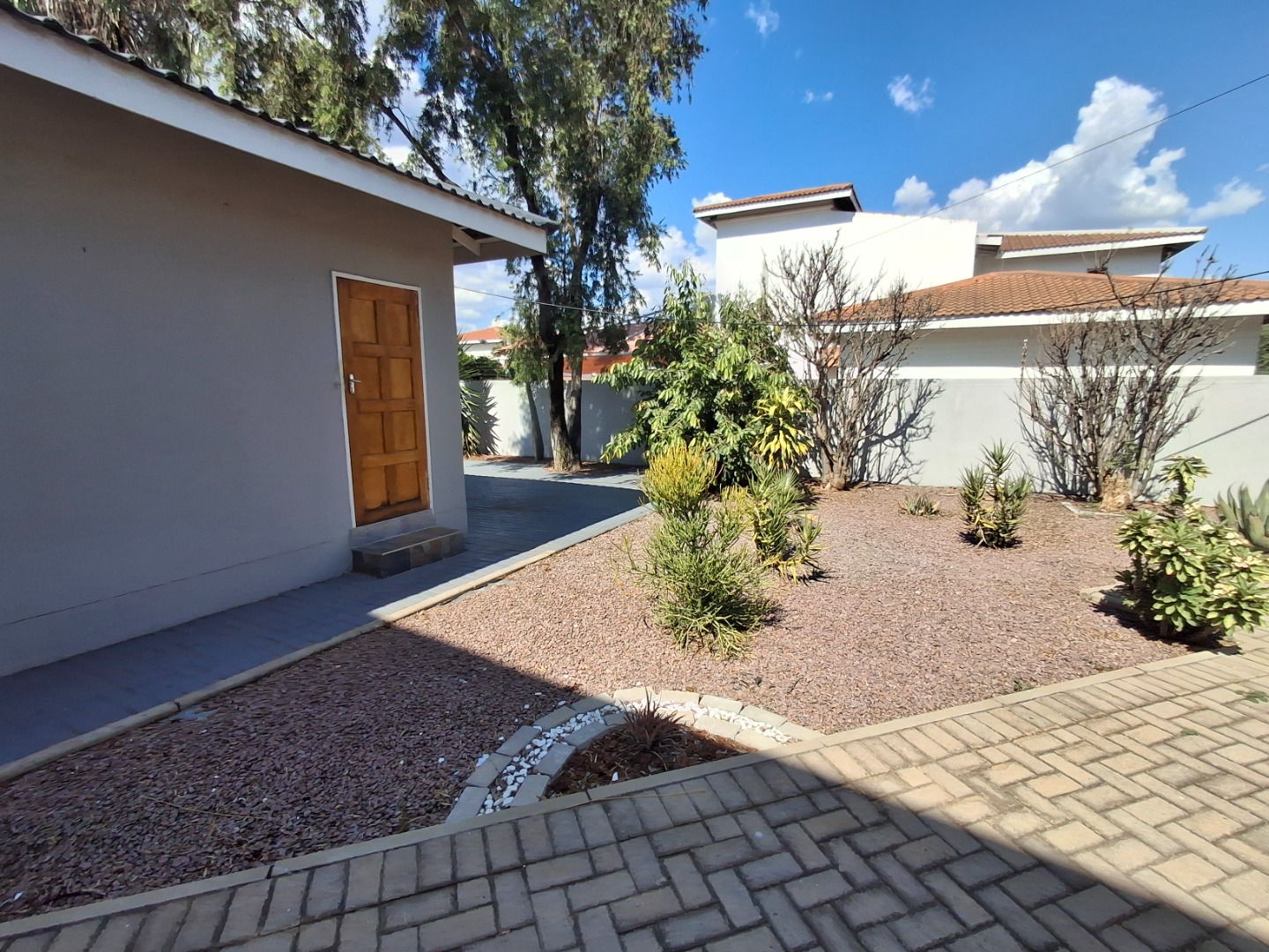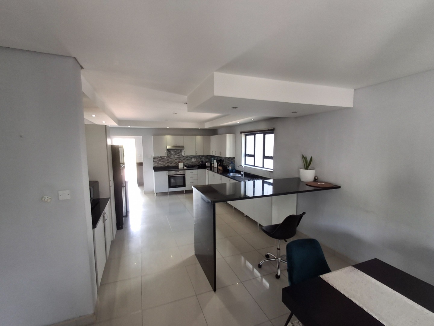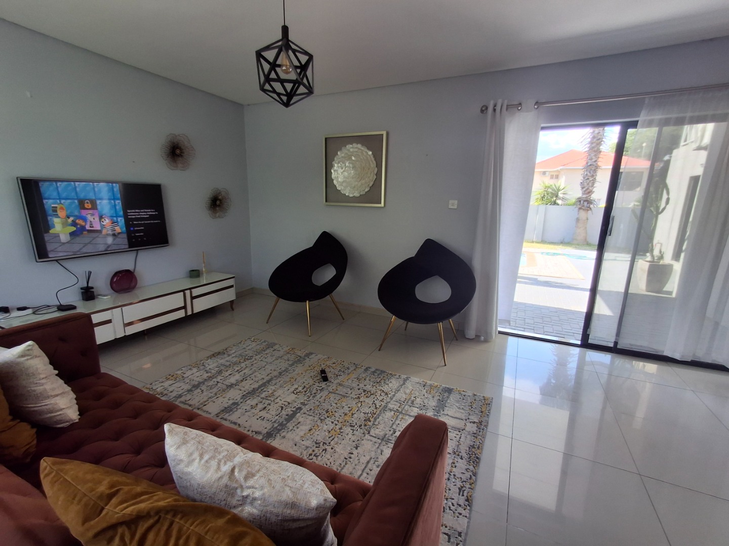 RE/MAX LISTING: BOTSWANA - GABORONE - PHAKALANE - PHASE ONE AREA: Discover an exquisite sanctuary nestled within a prestigious gated community in Phakalane, Gaborone, Botswana. This meticulously designed residential offering presents an elevated lifestyle for the discerning homeowner. The residence boasts a seamless integration of indoor and outdoor living, featuring an inviting open-plan layout that effortlessly connects the dining area with an expansive lounge, perfect for both grand entertaining and intimate relaxation. Air-conditioning ensures year-round comfort, while elegant sliding doors invite natural light and gentle breezes.