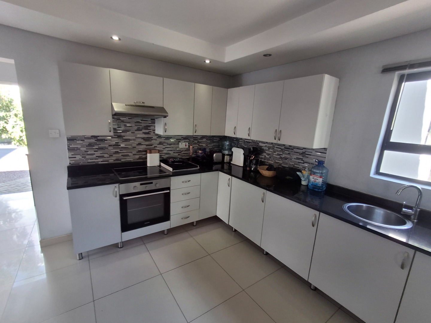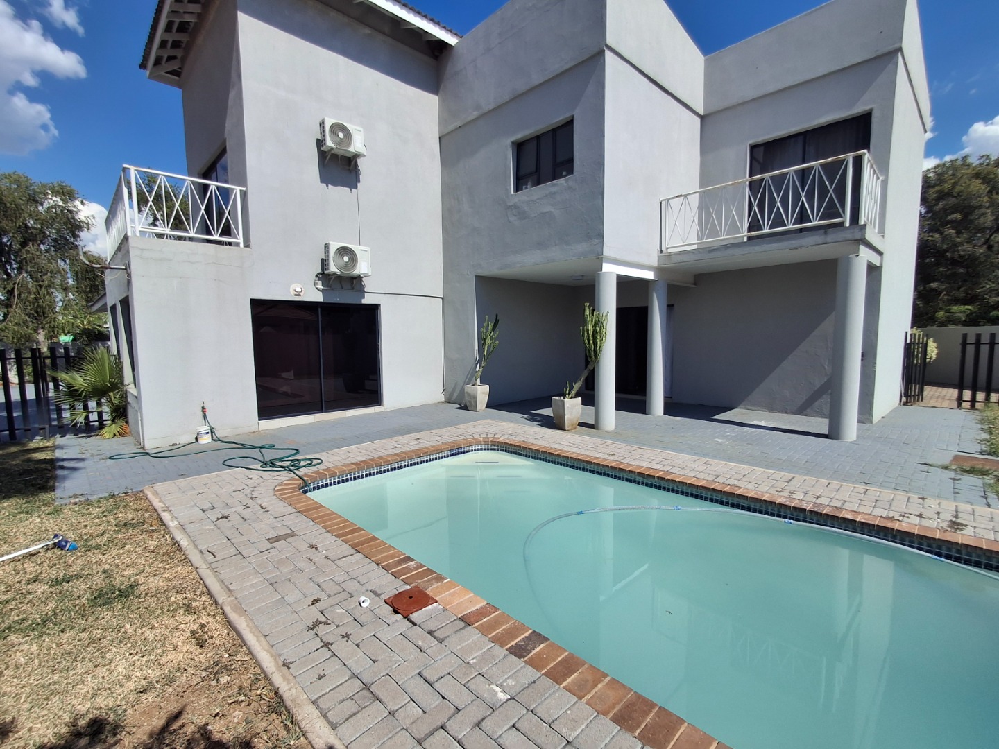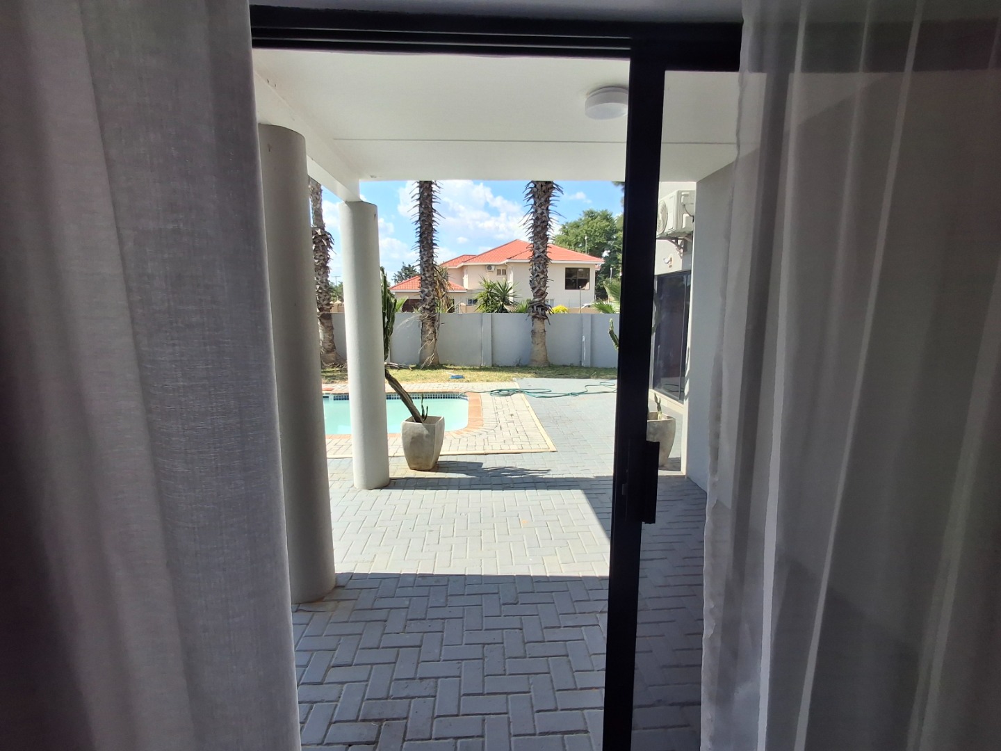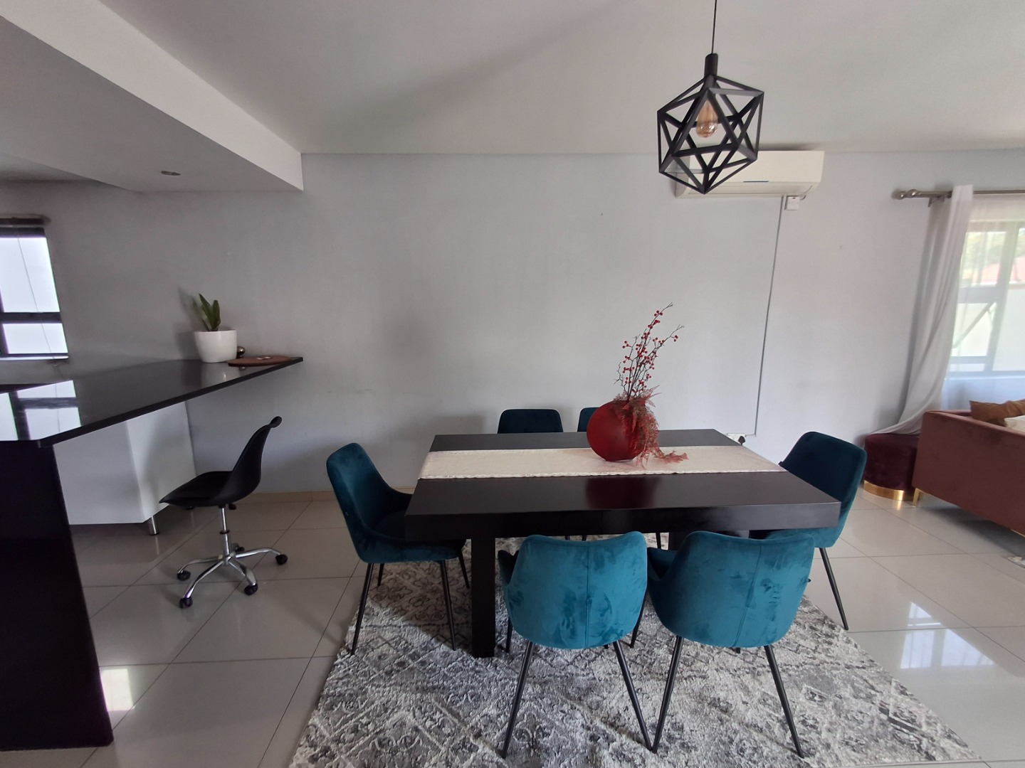 RE/MAX LISTING: BOTSWANA - GABORONE - PHAKALANE - PHASE ONE AREA: Discover an exquisite sanctuary nestled within a prestigious gated community in Phakalane, Gaborone, Botswana. This meticulously designed residential offering presents an elevated lifestyle for the discerning homeowner. The residence boasts a seamless integration of indoor and outdoor living, featuring an inviting open-plan layout that effortlessly connects the dining area with an expansive lounge, perfect for both grand entertaining and intimate relaxation. Air-conditioning ensures year-round comfort, while elegant sliding doors invite natural light and gentle breezes.