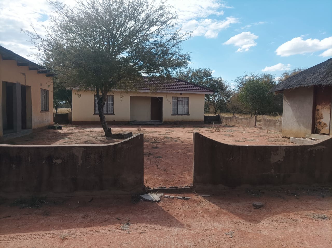 The farm is 2.5 hectares big. It is fenced on all sides with goat proof veldspan and debushed. There is a homestead with 2 houses for residence and 2 smaller houses that can be used for storage. There is no borehole, however there are 2 water tanks, 1000litres and 2500 litres which will be helpful for bowing water.