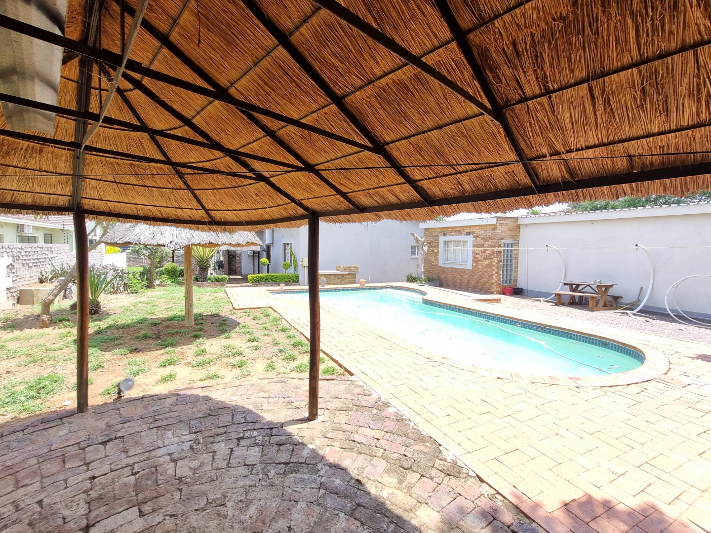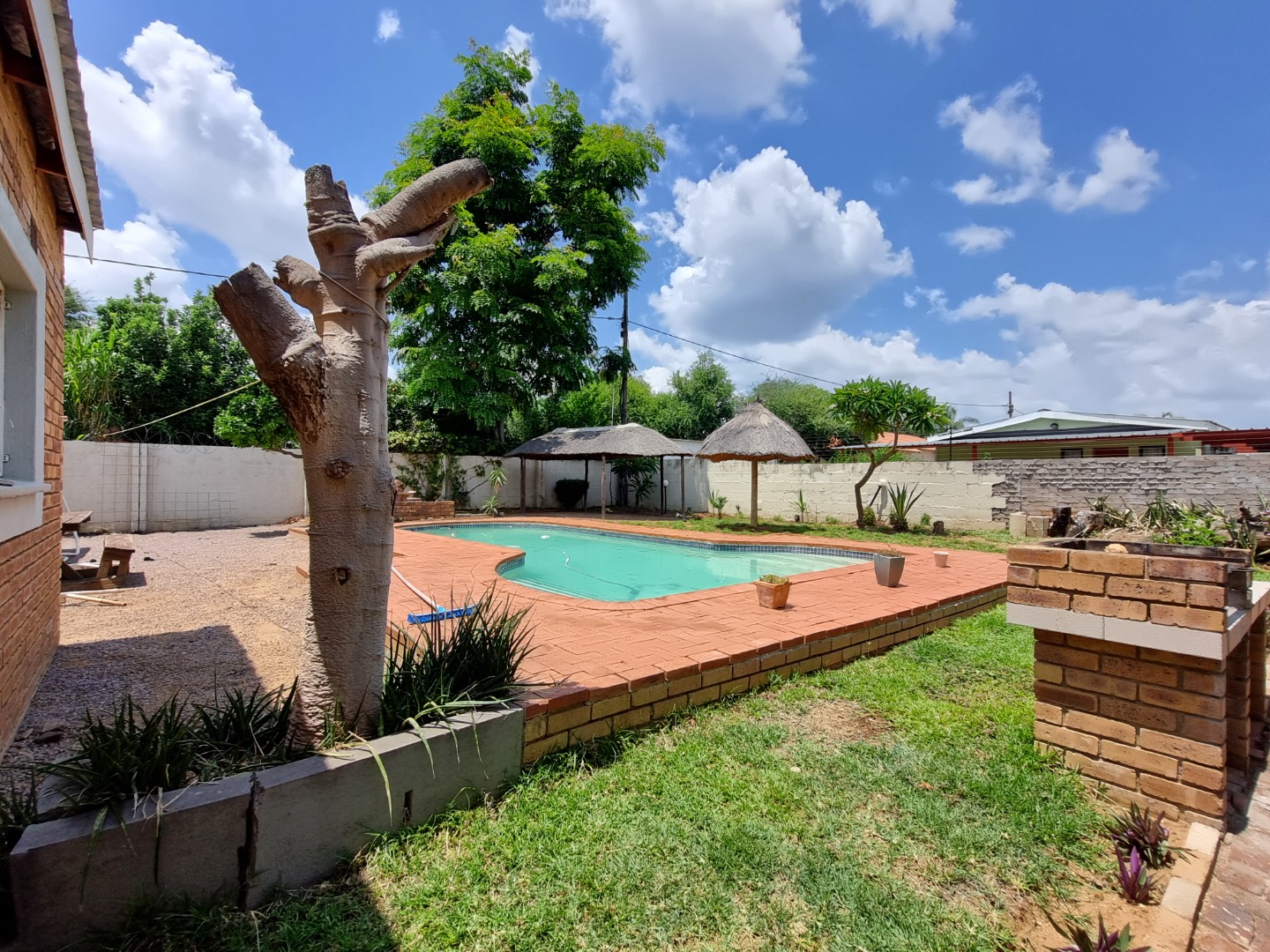 RE/MAX LISTING - BROADHURST: 3 Bedroom family home in this sought after area. A lovely large garden, pool and 2-bedroom cottage. The main house offers a spacious lounge with fitted wall unit, a dining area flowing into a fitted bar so handy for entertaining with ease. A very big well-appointed kitchen with loads of storage space, a separate laundry/ scullery so convenient. The master suite is really big and steps outward from its private exit, it has an ensuite bathroom too. Lovely braai area next to the pool and a covered lapa for enjoyment outdoors next to the pool. Interior will be painted.