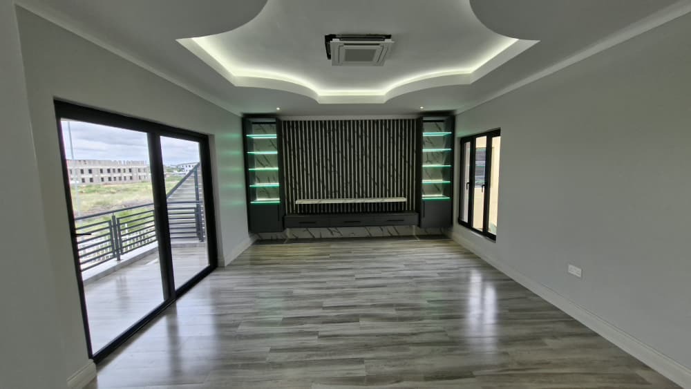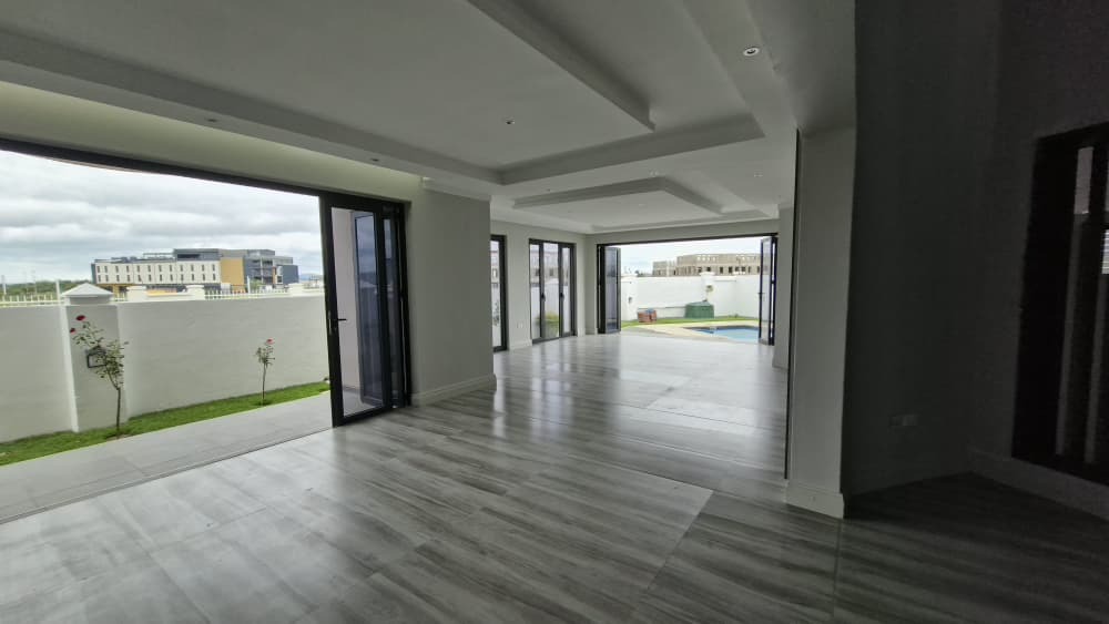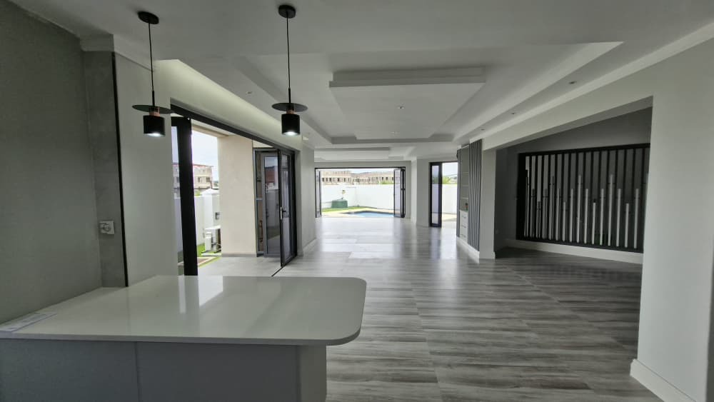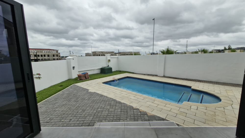 RE/MAX LISTING: GABORONE - SETHLOA VILLAGE ESTATE - AVAILABLE THIS FESTIVE SEASON: Discover an exquisite residential rental opportunity within a prestigious estate in Gaborone. This magnificent residence boasts four opulent bedrooms, each accompanied by its own lavish en-suite bathroom, ensuring unparalleled privacy and comfort. A dedicated guest toilet adds convenience for visitors. The expansive interior unfolds with an elegant entrance hall, leading to two sophisticated lounges and a distinct dining area, all seamlessly connected by an open-plan design. The gourmet kitchen, complete with a scullery. Throughout, the home features refined finishes, complemented by air conditioning for year-round comfort, and enhanced by special and sliding doors that invite natural light.