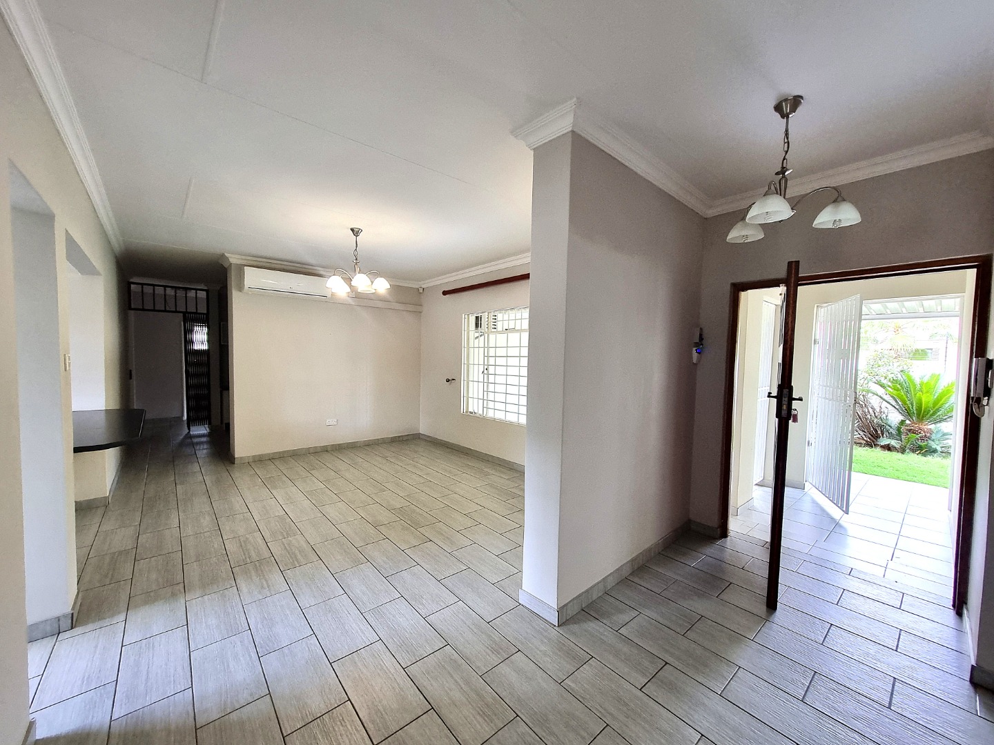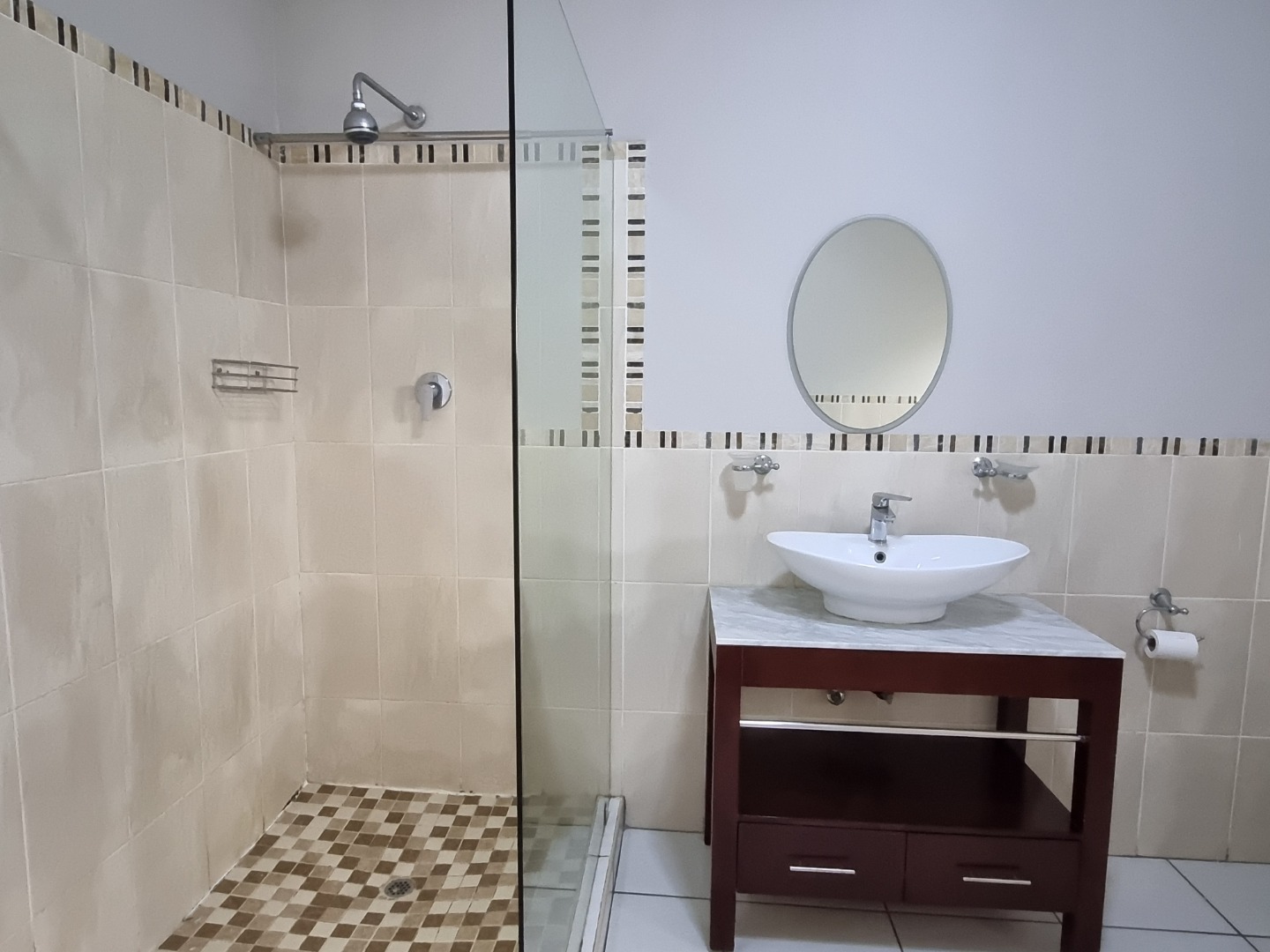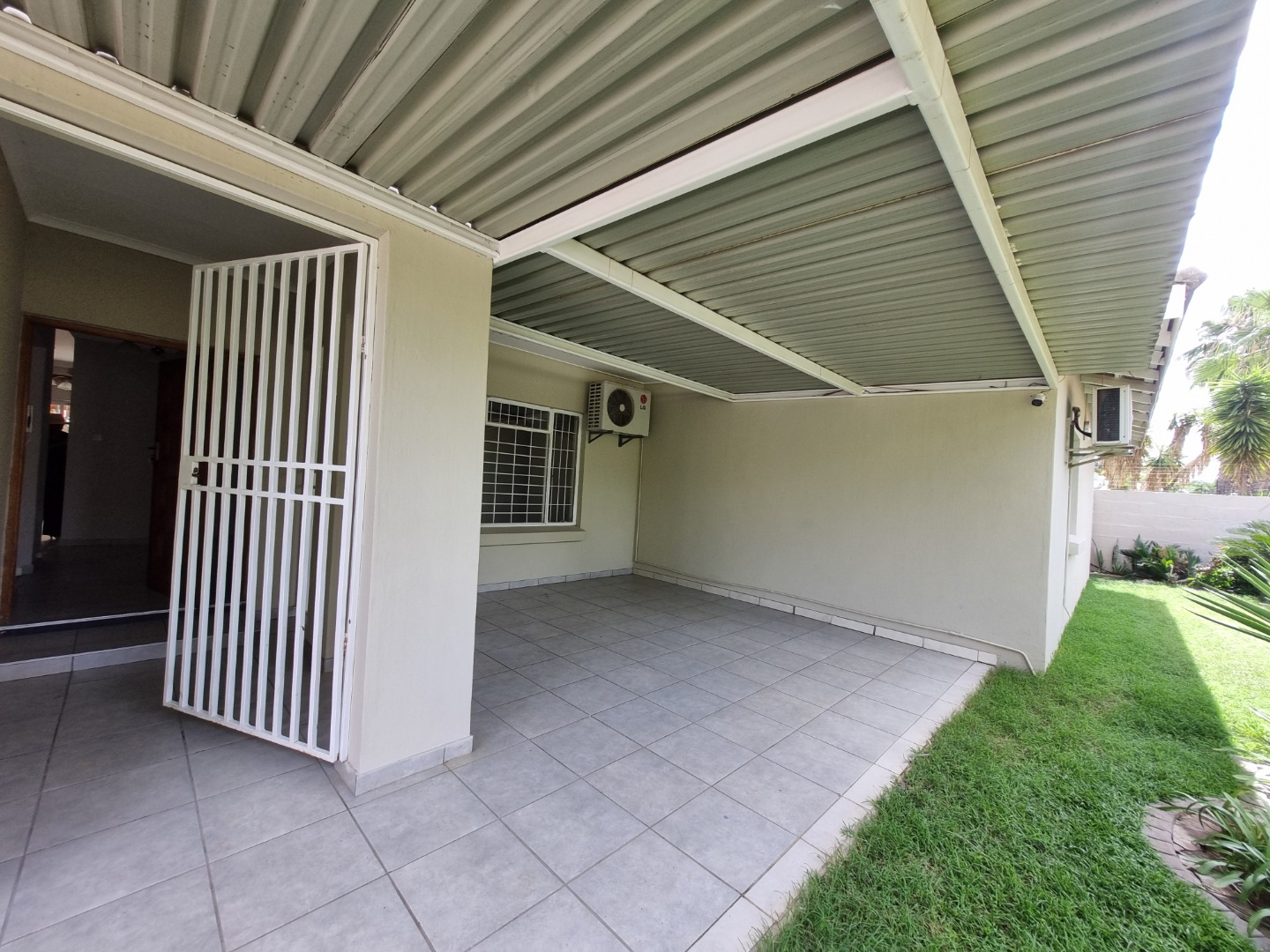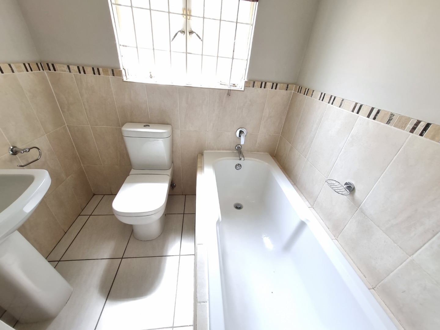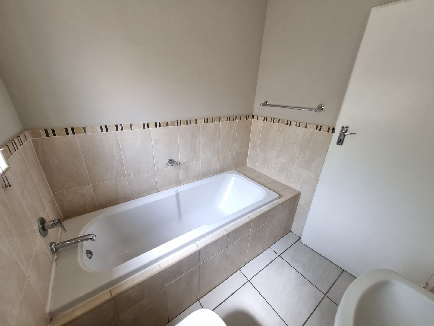 REMAX LISTING PHAKALANE: Available immediately. Immaculate home within a gated estate, offering a lovely light and bright lounge with fireplace, opening out to the entertainment bar area which leads out to the covered patio and the sparkling blue pool and the built-in-braai area. Perfect for entertaining and enjoying the outdoors and gatherings. The kitchen is well appointed with a scullery area, lots of storage and a handy breakfast counter opening into the dining area. There are 3 bedrooms, the master suite has its own ensuite bathroom and walk-in wardrobes; the other two bedrooms share the common bathroom and there is also a guest toilet. The study is really big and is well-fitted for convenience. There is a single garage, covered parking plus staff accommodation or guest wing, plus back-up water. This home has good security features all round and also has CCTV. Excellent home for a family available immediately, don’t hesitate. Call / WhatsApp Thalia 72575773.