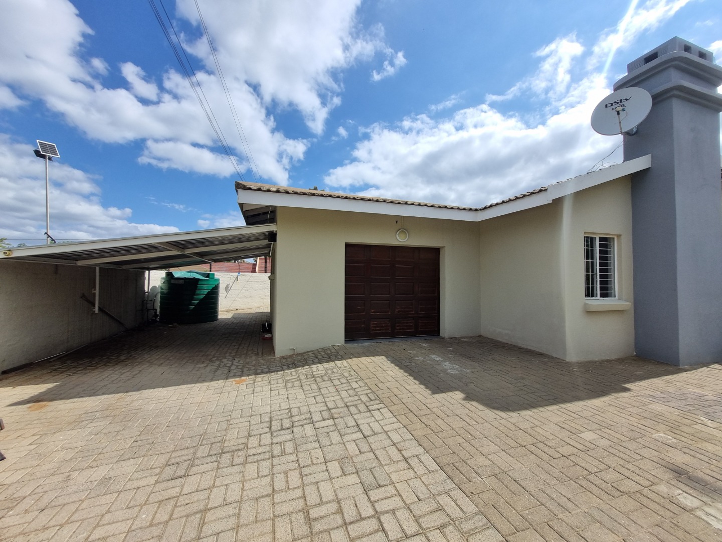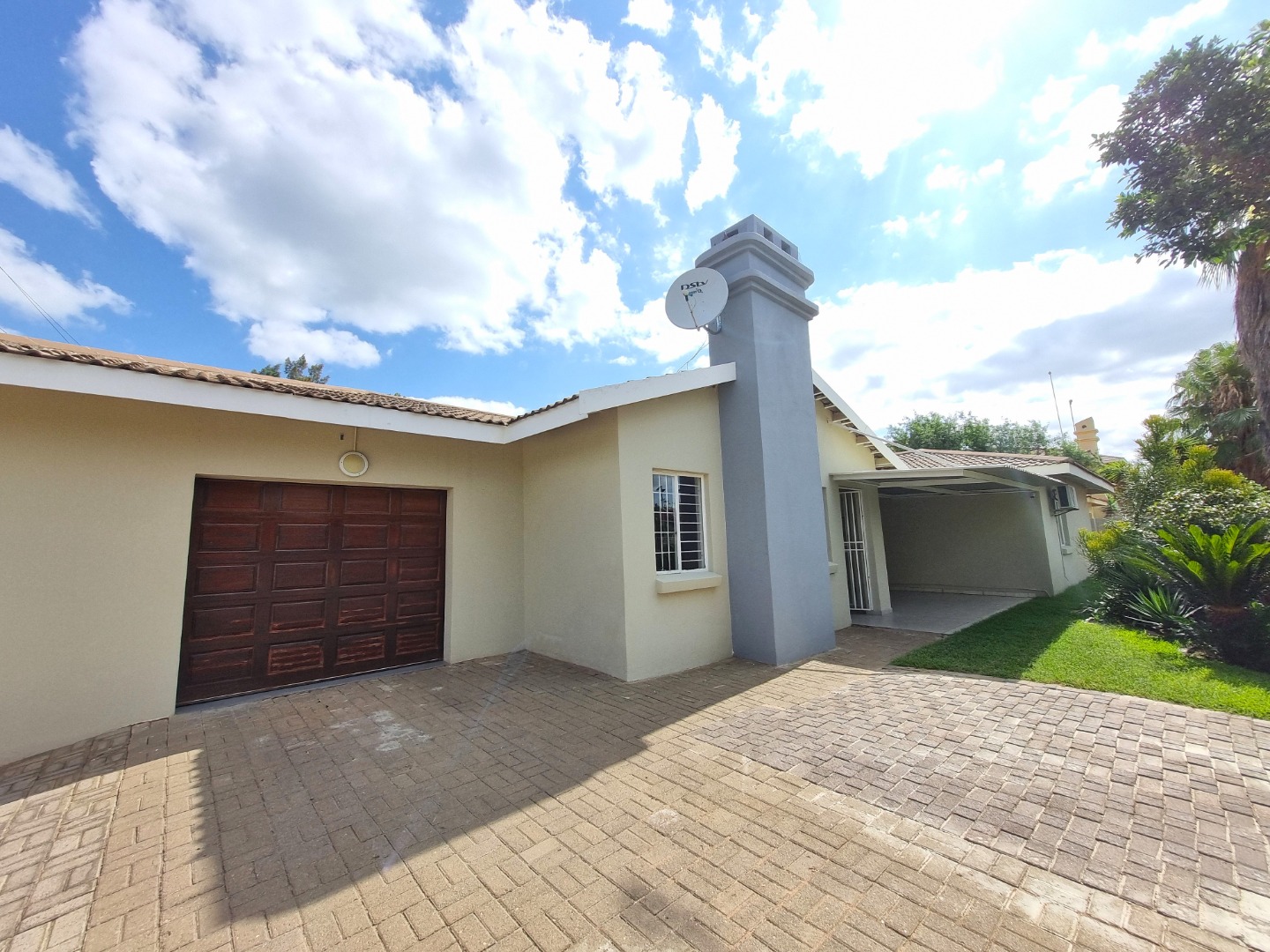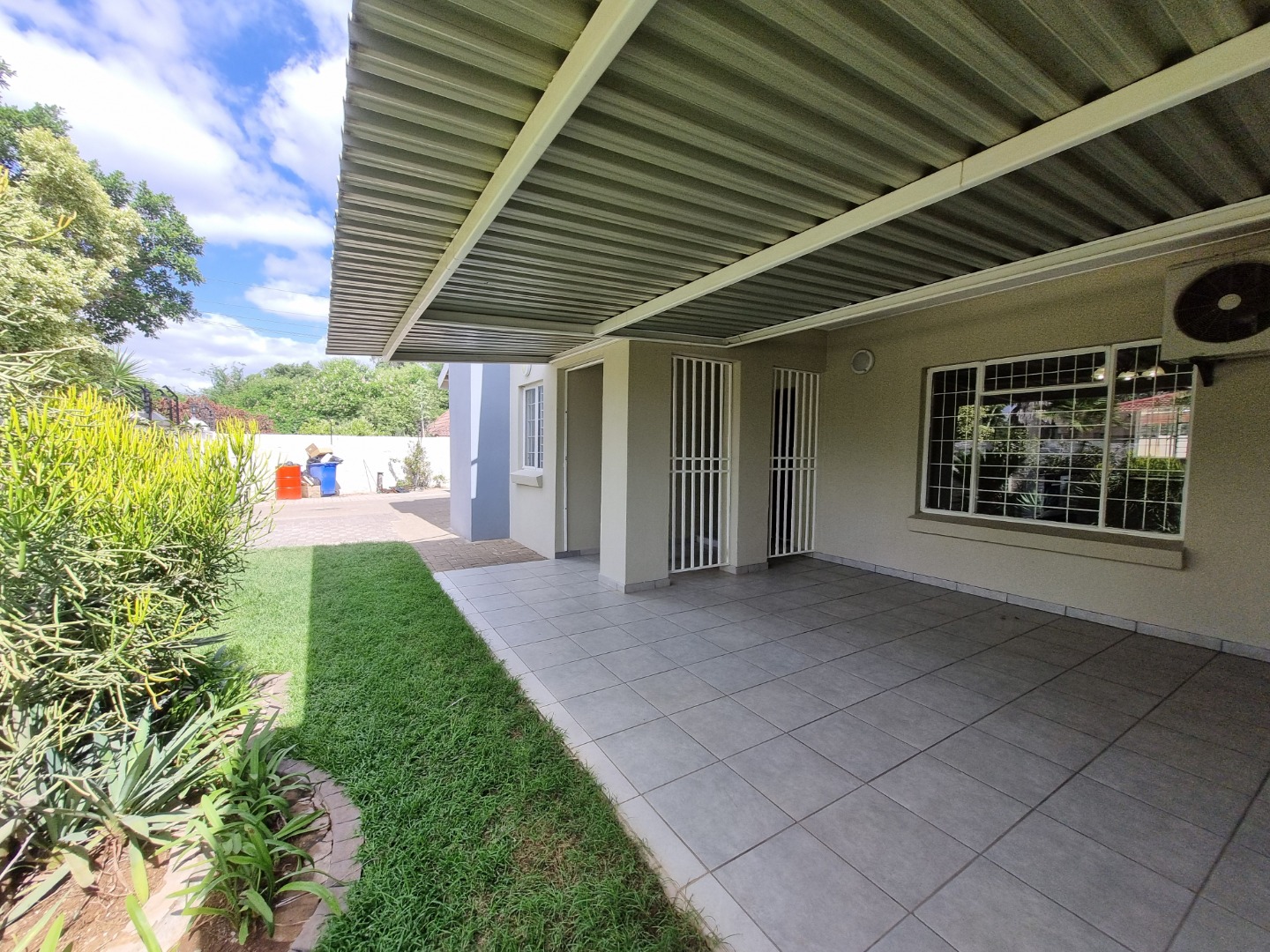 REMAX LISTING PHAKALANE: Available immediately. Immaculate home within a gated estate, offering a lovely light and bright lounge with fireplace, opening out to the entertainment bar area which leads out to the covered patio and the sparkling blue pool and the built-in-braai area. Perfect for entertaining and enjoying the outdoors and gatherings. The kitchen is well appointed with a scullery area, lots of storage and a handy breakfast counter opening into the dining area. There are 3 bedrooms, the master suite has its own ensuite bathroom and walk-in wardrobes; the other two bedrooms share the common bathroom and there is also a guest toilet. The study is really big and is well-fitted for convenience. There is a single garage, covered parking plus staff accommodation or guest wing, plus back-up water. This home has good security features all round and also has CCTV. Excellent home for a family available immediately, don’t hesitate. Call / WhatsApp Thalia 72575773.
