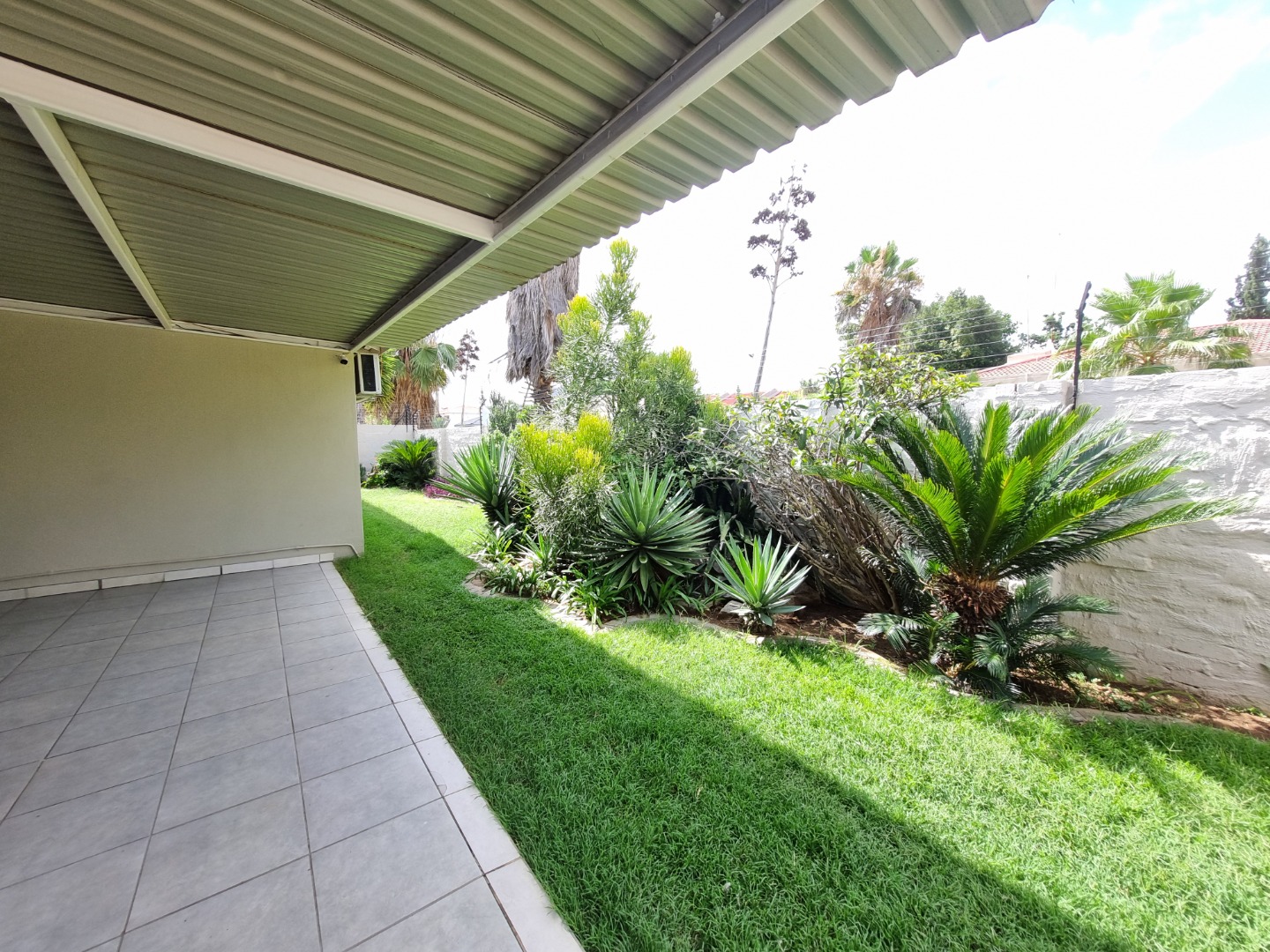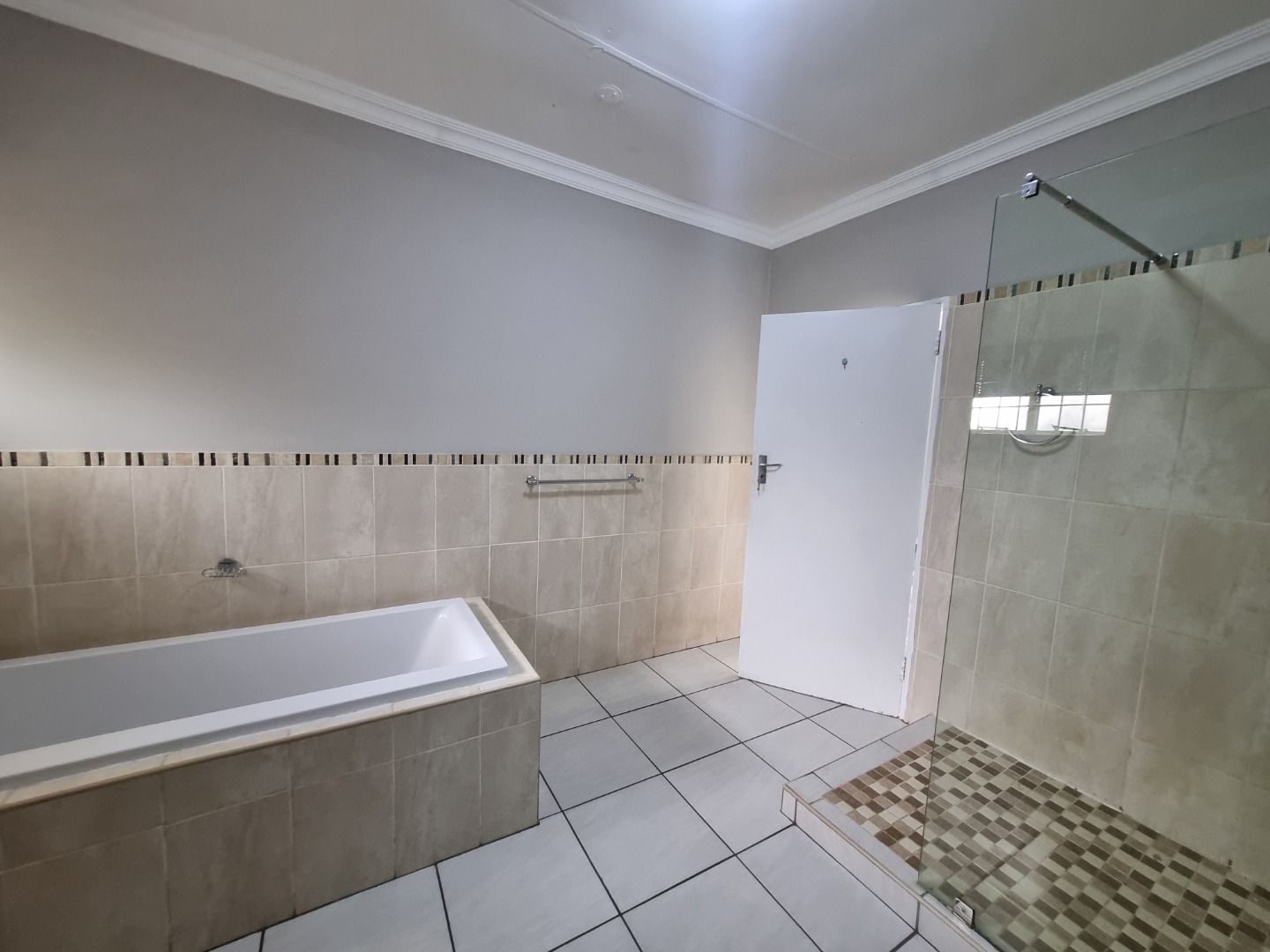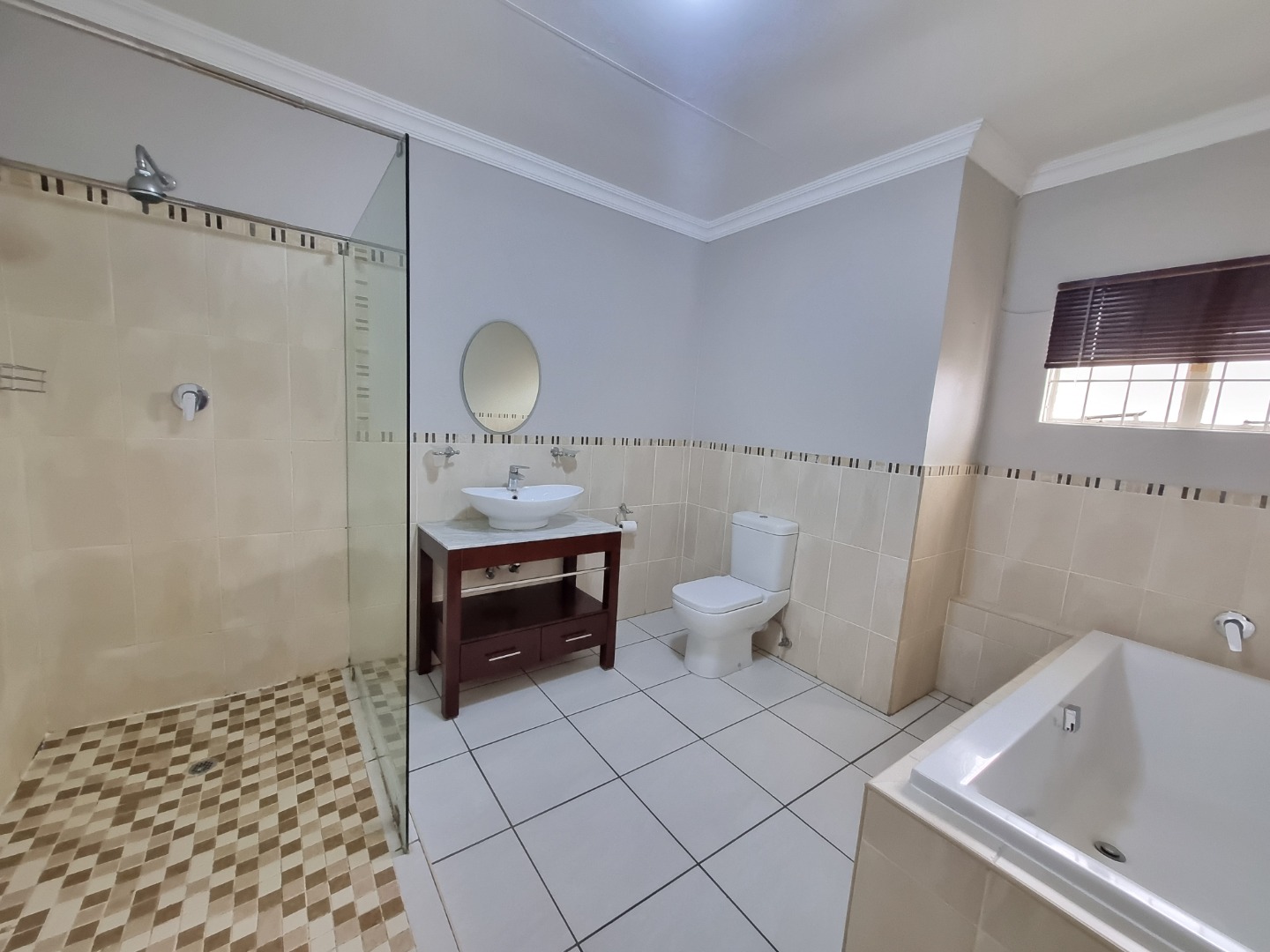 REMAX LISTING PHAKALANE: Available immediately. Immaculate home within a gated estate, offering a lovely light and bright lounge with fireplace, opening out to the entertainment bar area which leads out to the covered patio and the sparkling blue pool and the built-in-braai area. Perfect for entertaining and enjoying the outdoors and gatherings. The kitchen is well appointed with a scullery area, lots of storage and a handy breakfast counter opening into the dining area. There are 3 bedrooms, the master suite has its own ensuite bathroom and walk-in wardrobes; the other two bedrooms share the common bathroom and there is also a guest toilet. The study is really big and is well-fitted for convenience. There is a single garage, covered parking plus staff accommodation or guest wing, plus back-up water. This home has good security features all round and also has CCTV. Excellent home for a family available immediately, don’t hesitate. Call / WhatsApp Thalia 72575773.
