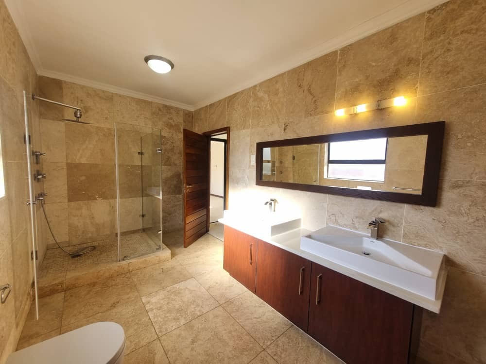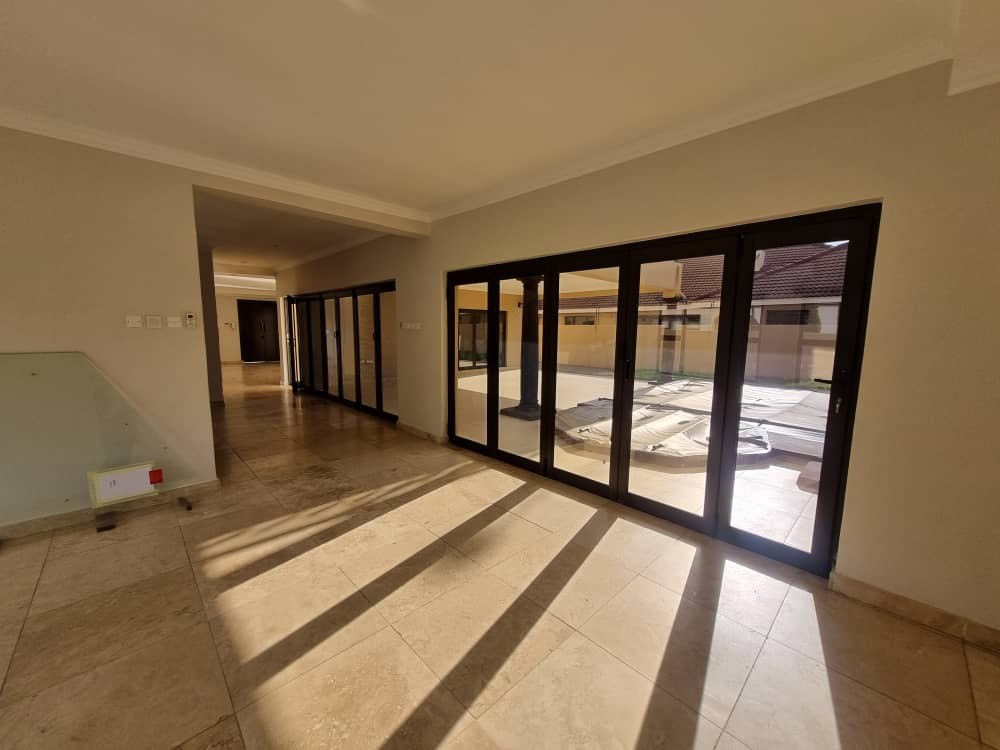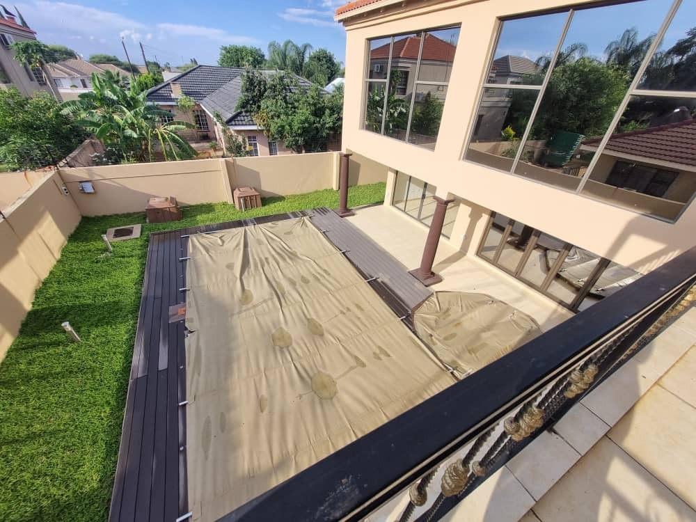 RE/MAX LISTING - PHAKALANE - Your dream home. This home has lots to offer. Open living area with lots of space. Kitchen is fitted with a modern appeal with Bosch oven and microwave. Upstairs has a large gym room and entertainment area. 3 bedrooms all en-suite bathrooms. Downstairs 4th bedroom with en-suite. The patio overlooking the sparkling pool with decking and a Jacuzzi. Staff quarters. Available for occupation.